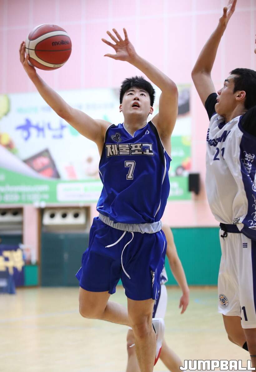 17일 전남 해남 동백체육관에서 열린 제63회 춘계전국남녀 중고농구연맹전 남고부 예선전 경기, 스타팅 라인업 다섯 명 중 네 명의 선수가 두 자리수 득점을 올리며 고른 활약에 힘입어 제물포고가 82-78로 광신방예고의 추격을 뿌리치고 승리를 차지했다.