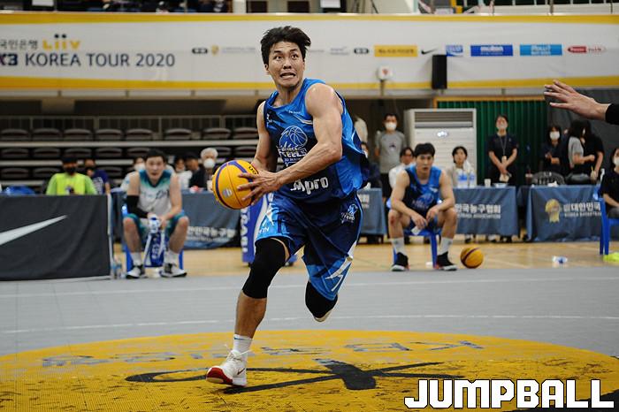 [점프볼=양산/박상혁 기자] 26일 양산실내체육관에서 열린 'KB국민은행 LiiV 3X3 코리아투어 2020 양산대회' 2일차 경기, 아프리카 프릭스 노승준이 공을 들고 골밑으로 들어가고 있다.