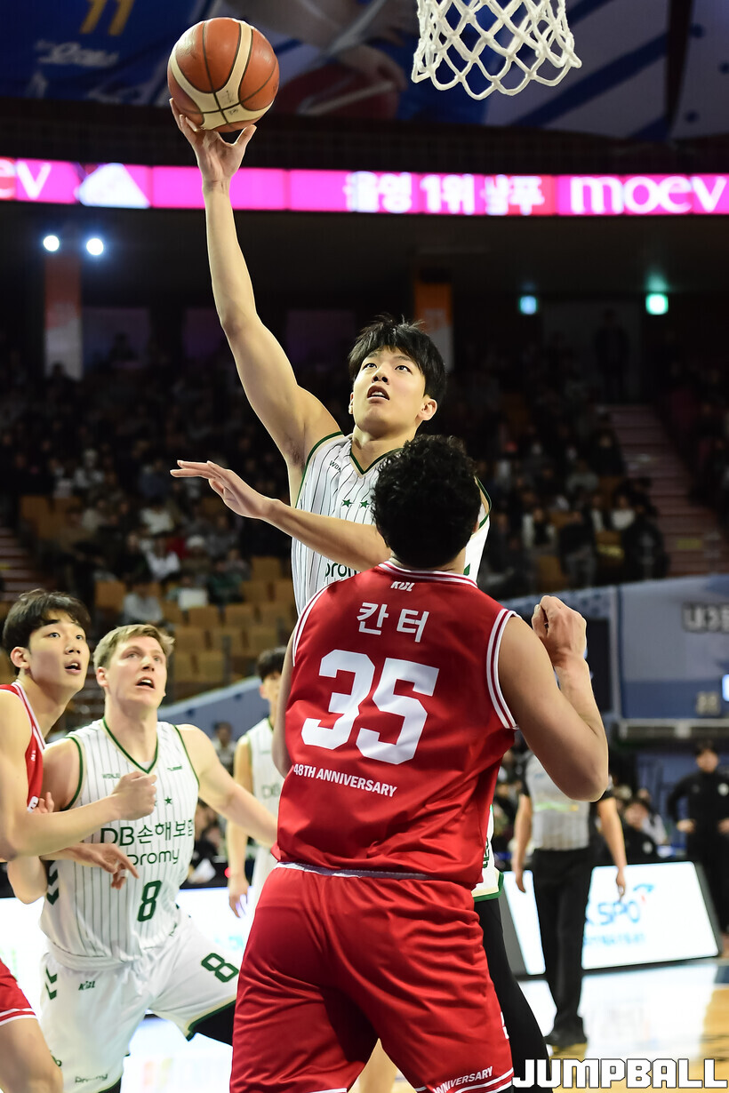 [점프볼=잠실/박상혁 기자] 7일 잠실체육관에서 열린 2025-2026 LG전자 프로농구 서울 삼성과 원주 DB의 경기, DB 김보배가 슛을 시도하고 있다.