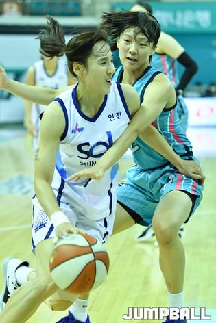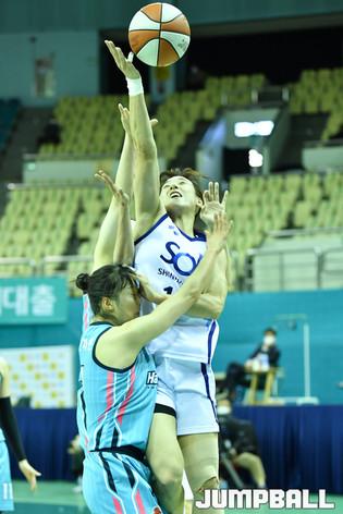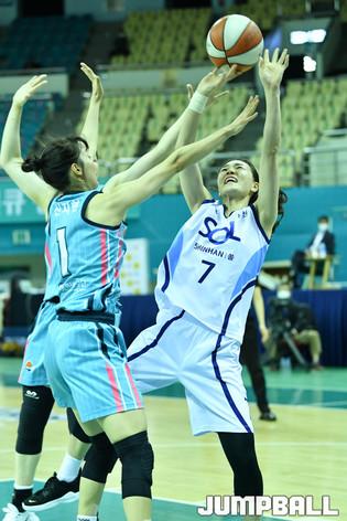 [점프볼=부천/유용우 기자] 22일 부천체육관에서 열린 'KB국민은행 Liiv M 2020-2021 여자프로농구' 하나원큐와 신한은행의 경기, 신한은행 이경은이 공격을 시도하고 있다.