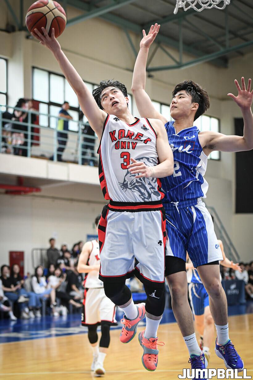[점프볼=안성/박상혁 기자] 7일 중앙대 안성캠퍼스 체육관에서 열린 2023 KUSF 대학농구 U-리그 중앙대와 고려대의 경기, 고려대 박무빈이 레이업슛을 시도하고 있다.