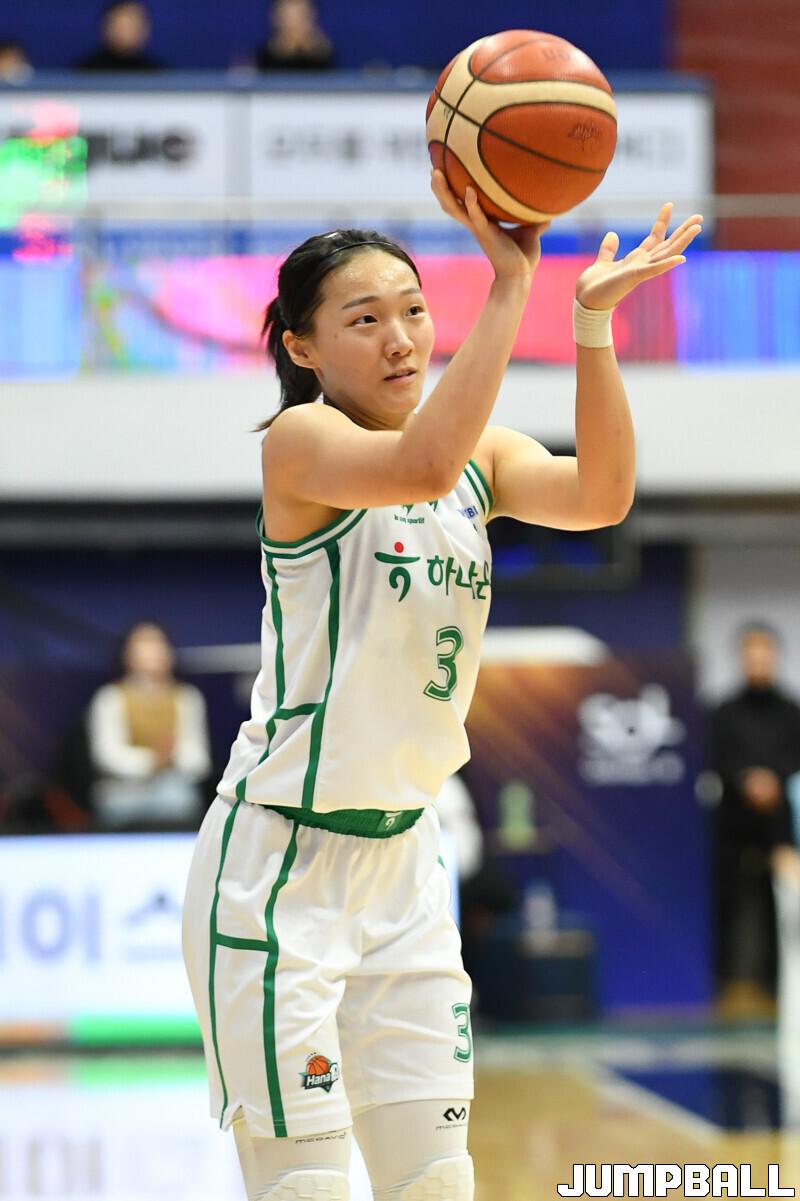 [점프볼=인천/유용우 기자] 24일 인천 도원체육관에서 열린 우리은행 우리WON 2023~2024 여자프로농구 인천 신한은행과 부천 하나원큐의 경기, 하나원큐 정예림이 슛을 시도하고 있다.