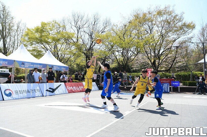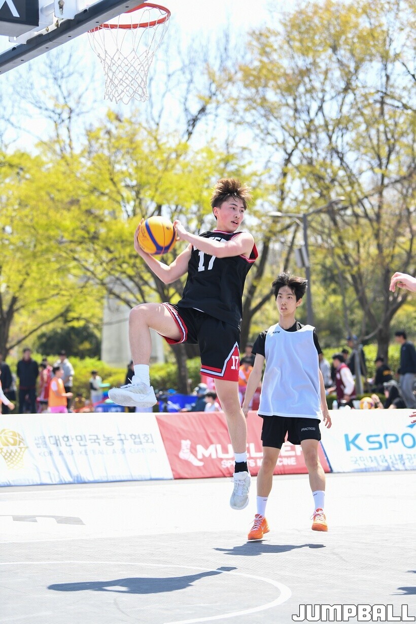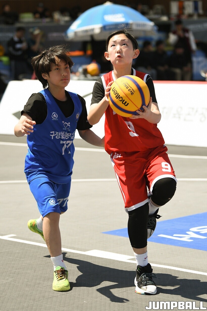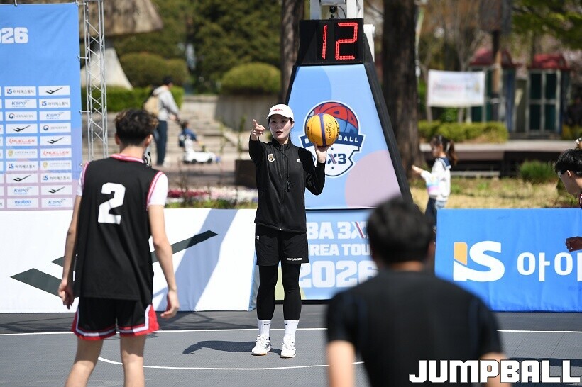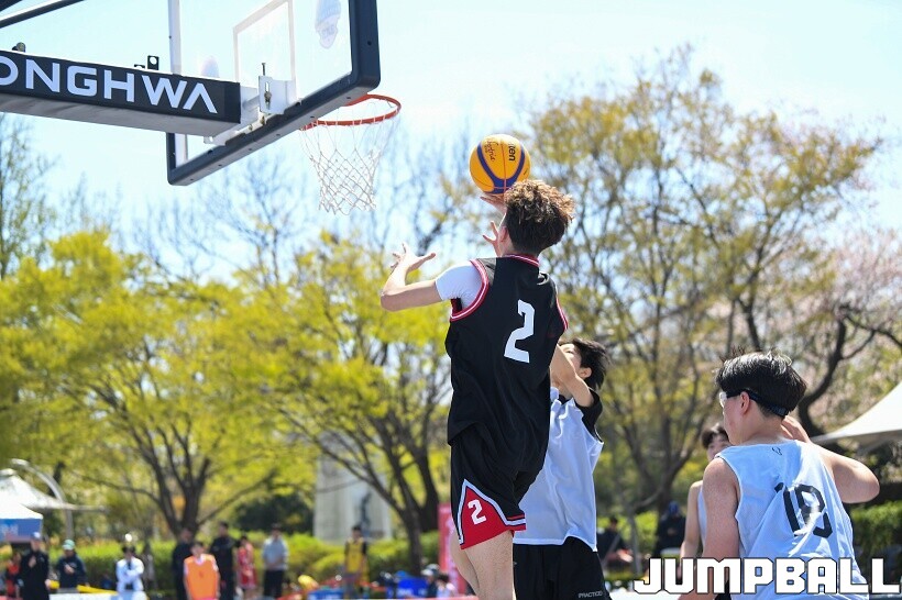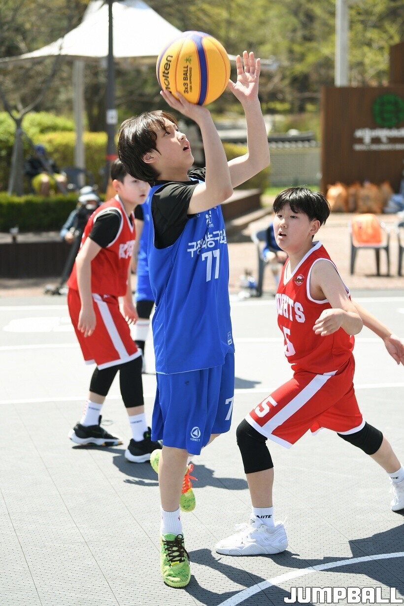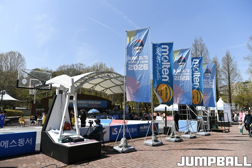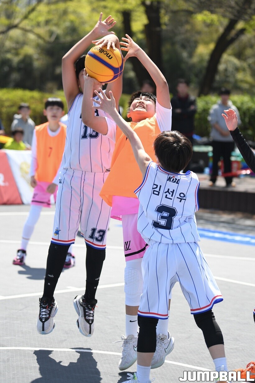 [점프볼=서울/유용우 기자] 12일 서울어린이대공원 열린무대 앞 특설코트에서 KBA 3x3 코리아투어 2026 서울대회 2일차 경기가 열렸다. 초등부, 중등부, 고등부, 오픈부, 여자오픈부 5개 종별 61개팀 234명이 참가했다. KBA 3x3 코리아투어 2026 서울대회 참가 선수들이 본선 토너먼트에 돌입하여 치열한 경쟁을 펼쳤다.
