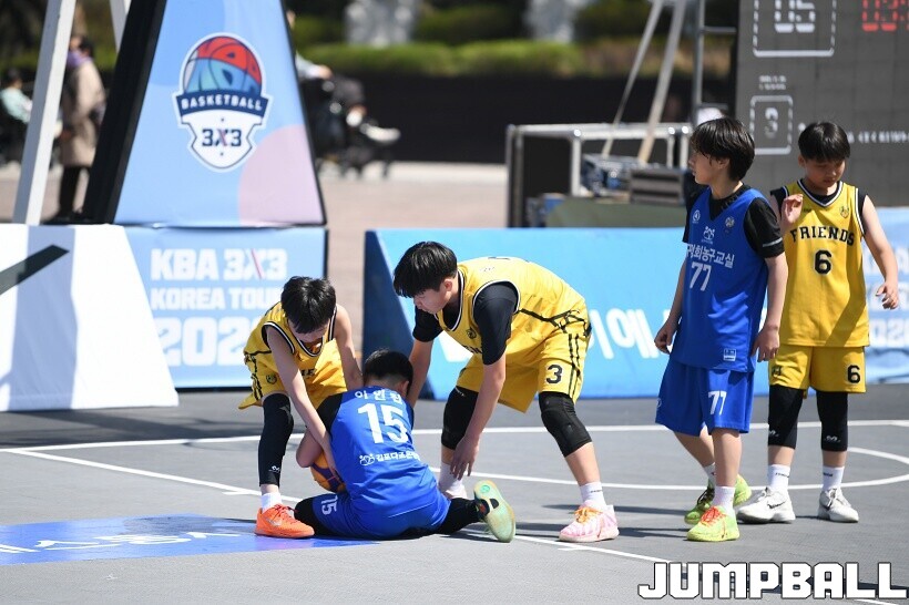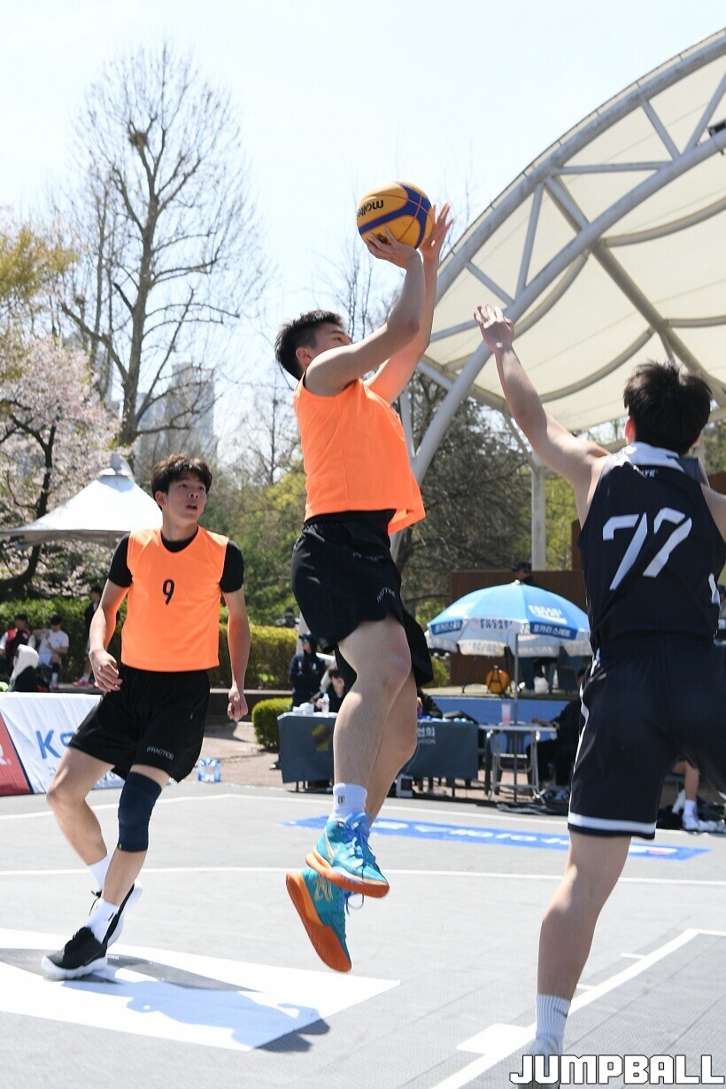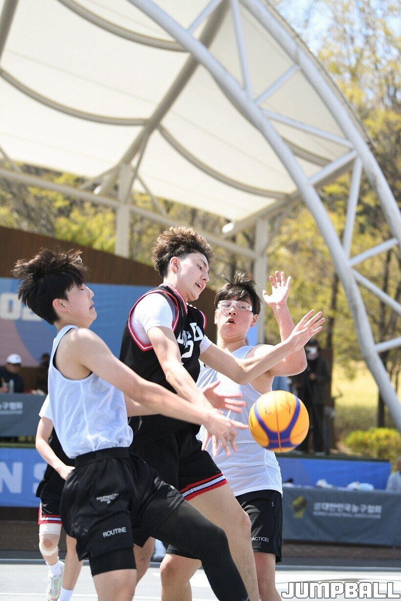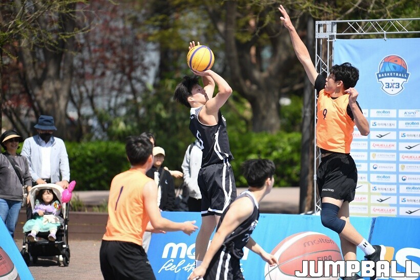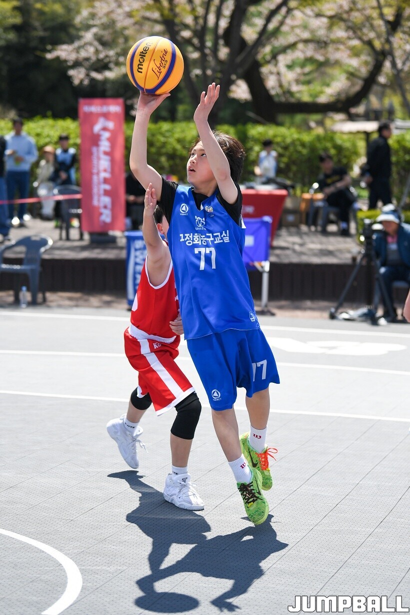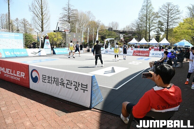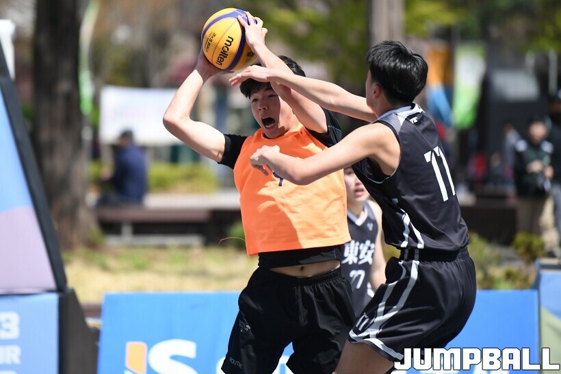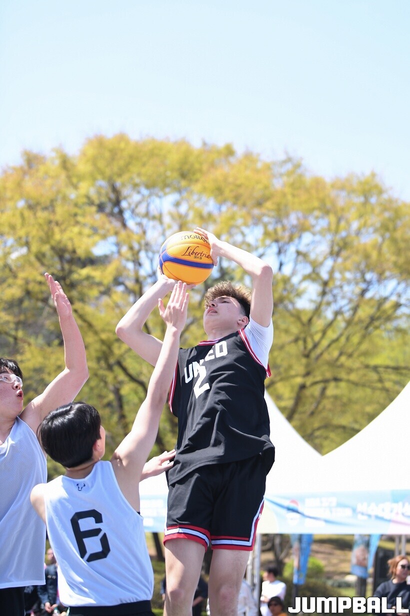 [점프볼=서울/유용우 기자] 12일 서울어린이대공원 열린무대 앞 특설코트에서 KBA 3x3 코리아투어 2026 서울대회 2일차 경기가 열렸다. 초등부, 중등부, 고등부, 오픈부, 여자오픈부 5개 종별 61개팀 234명이 참가했다. KBA 3x3 코리아투어 2026 서울대회 참가 선수들이 본선 토너먼트에 돌입하여 치열한 경쟁을 펼쳤다.