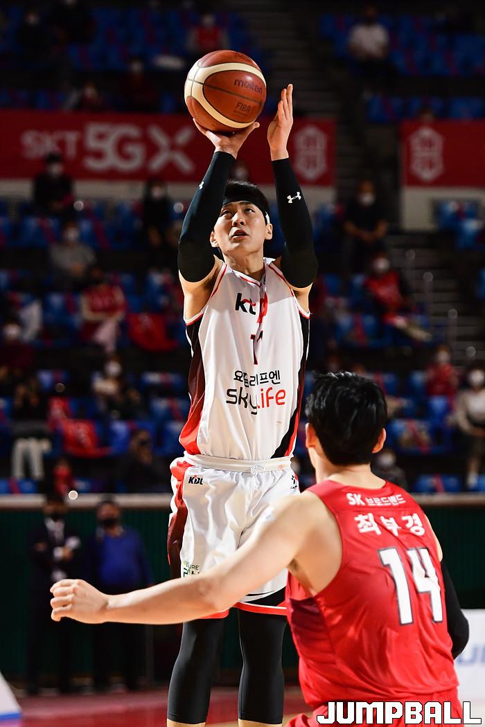 [점프볼=잠실학생/박상혁 기자] 25일 잠실학생체육관에서 열린 2020-2021 현대모비스 프로농구 서울 SK와 부산 KT의 경기, KT 양홍석이 3점슛을 시도하고 있다.