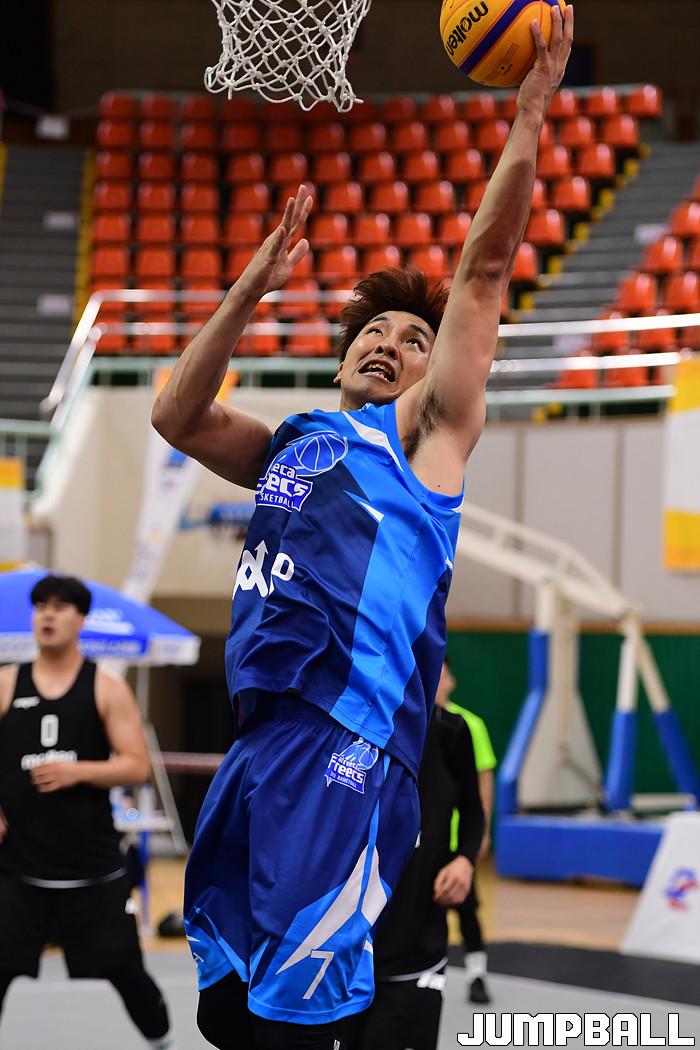 [점프볼=양산/박상혁 기자] 25일 양산실내체육관에서 열린 ' KBA 2020 코리아투어 양산대회' 1일차 경기, 리그전에서 아프리카 프릭스 노승준이 레이업 슛을 시도하고 있다.