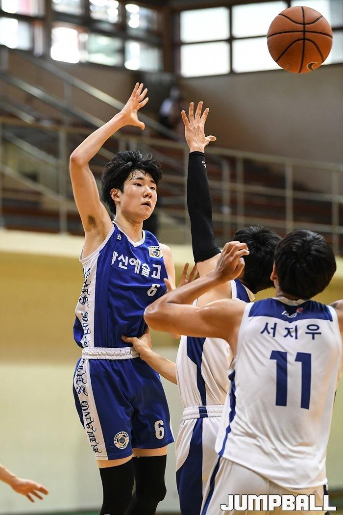 3일 양천구에 위치한 양정고등학교 체육관에서 열린 2022 한국중고농구 주말리그 배재고와 광신방송예술고의 경기, 광신방송예술고 허은이 패스를 내주고 있다.[점프볼=유용우 기자]