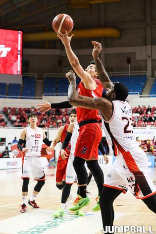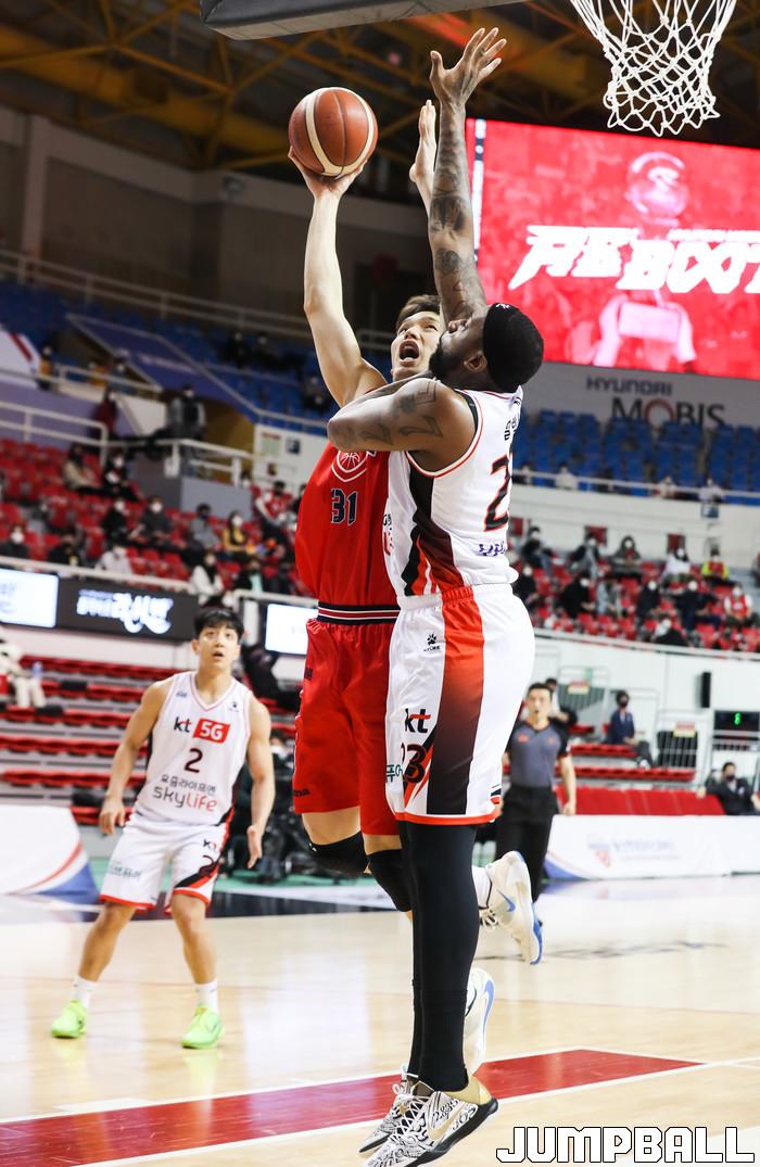 [점프볼=윤민호 기자] 24일 울산 동천체육관에서 열린 2020-2021 현대모비스 프로농구 울산현대모비스와 부산 KT의 경기