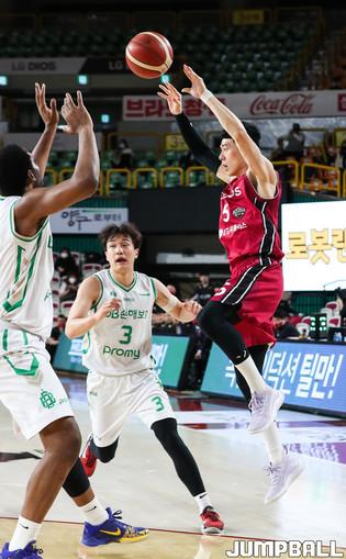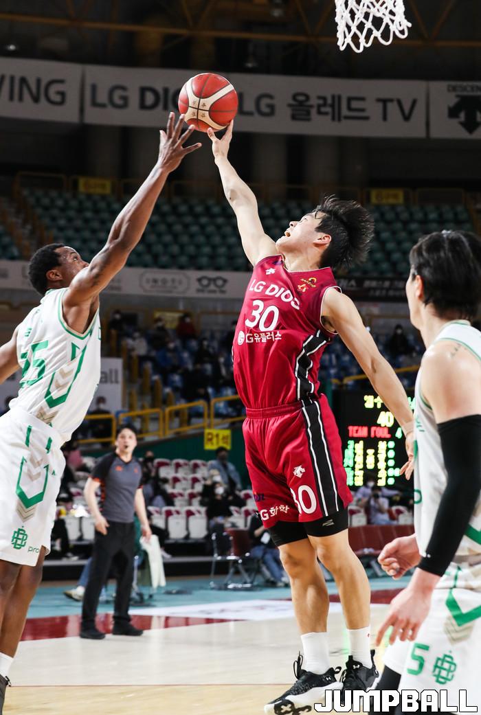 [점프볼=윤민호 기자] 22일 창원실내체육관에서 열린 2020-2021 현대모비스 프로농구 창원 LG와 원주 DB의 경기