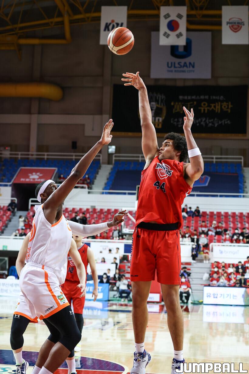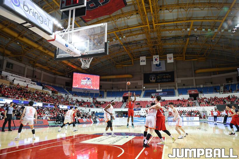 [점프볼=윤민호 기자] 울산 현대모비스는 2일 울산동천체육관에서 열린 2022~2023 SKT 에이닷 고양 캐롯과 프로농구 6강 플레이오프 1차전에서 86-71로 이겼다. 현대모비스는 이날 승리로 4강 플레이오프에 진출할 확률 94%(47/50)를 확보했다.
