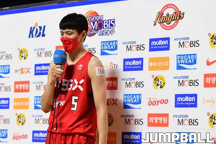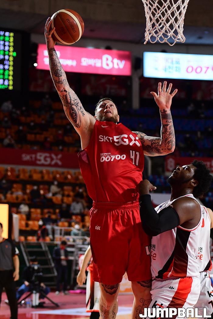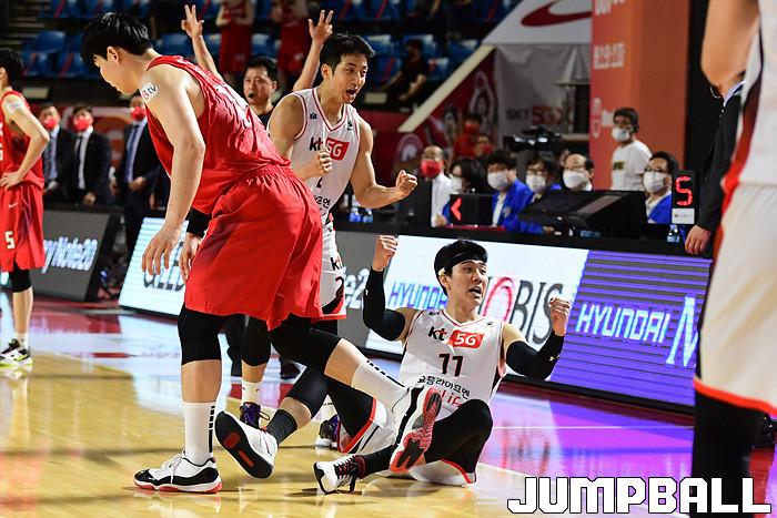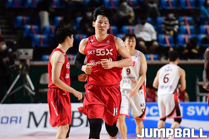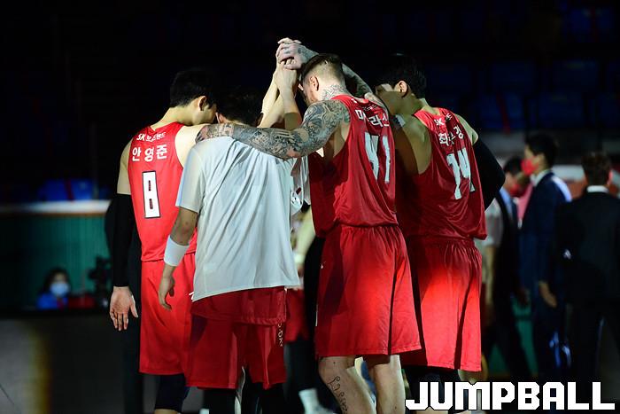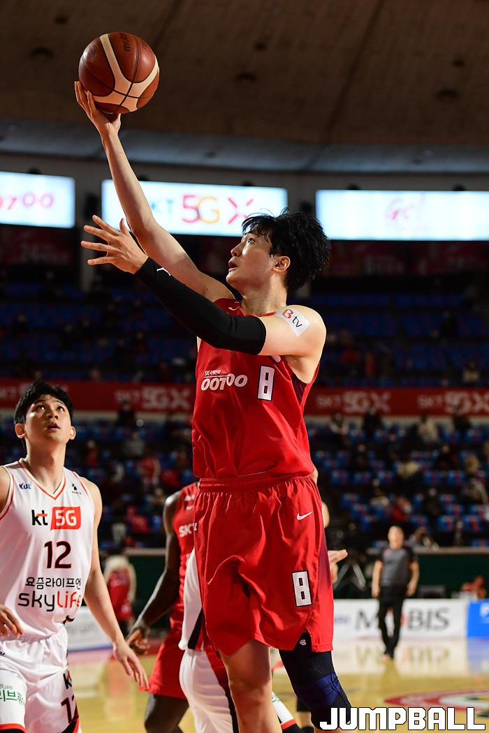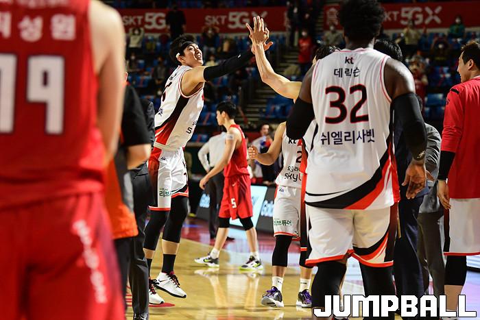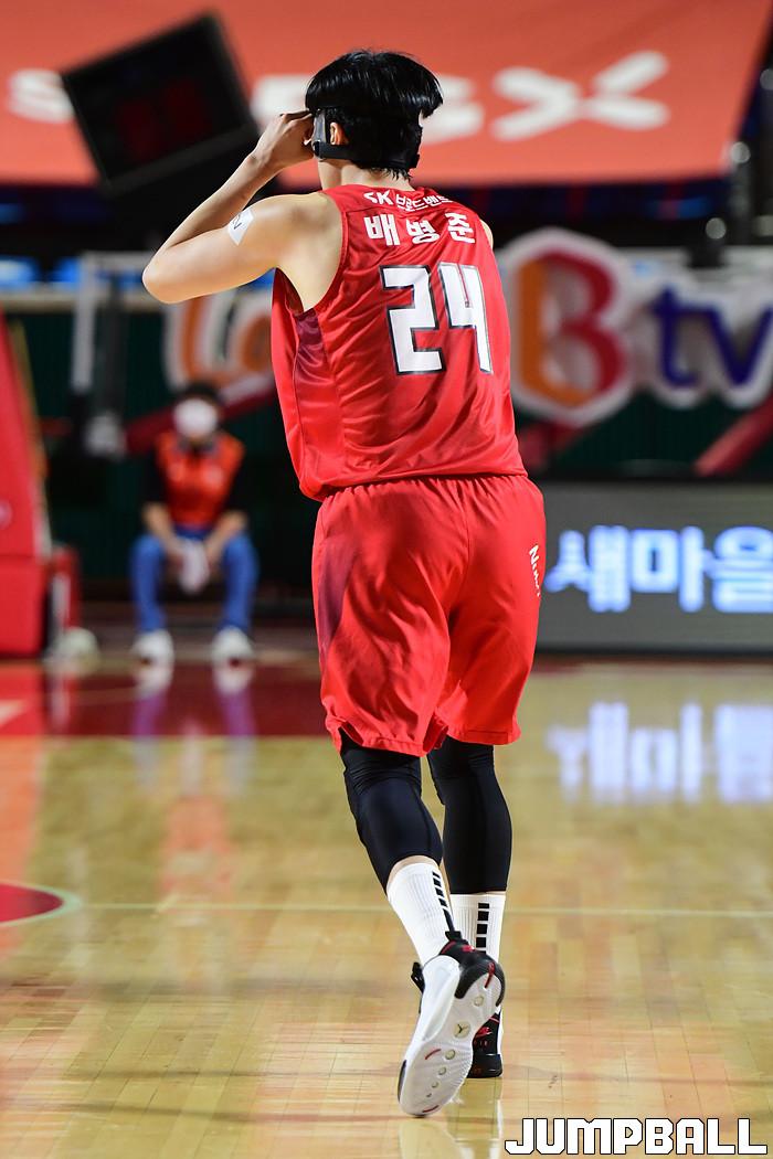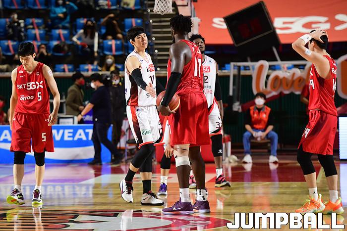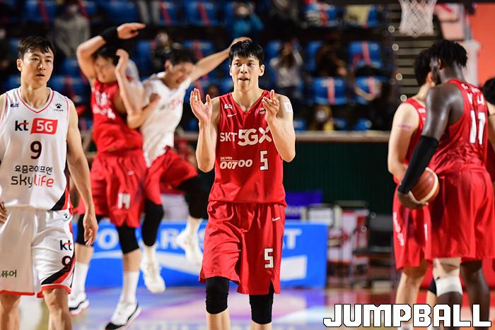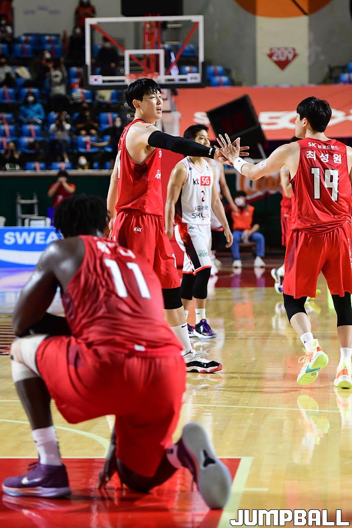 [점프볼=잠실학생/박상혁 기자] 25일 잠실학생체육관에서 열린 2020-2021 현대모비스 프로농구 서울 SK와 부산 KT의 경기, SK가 연장까지가는 접전끝에 KT에 92-88로 승리했다. SK와 KT 경기 화보