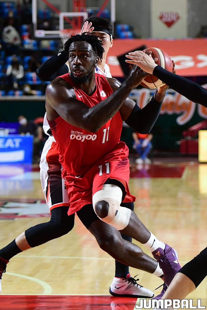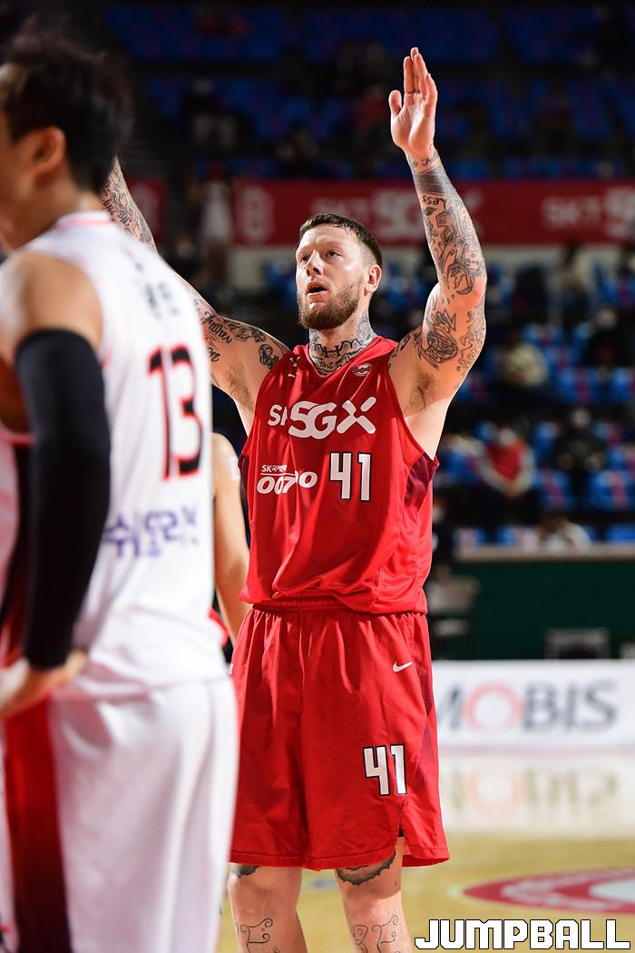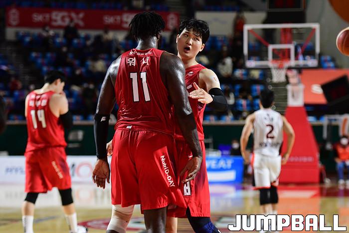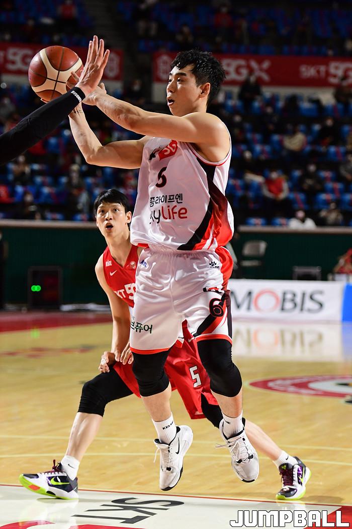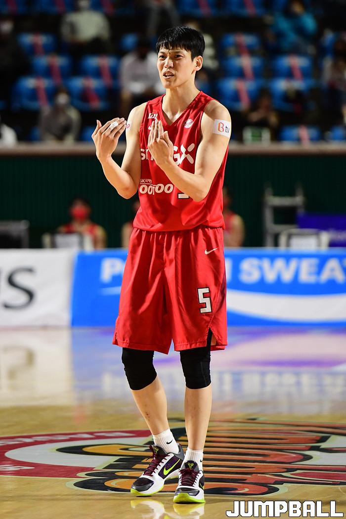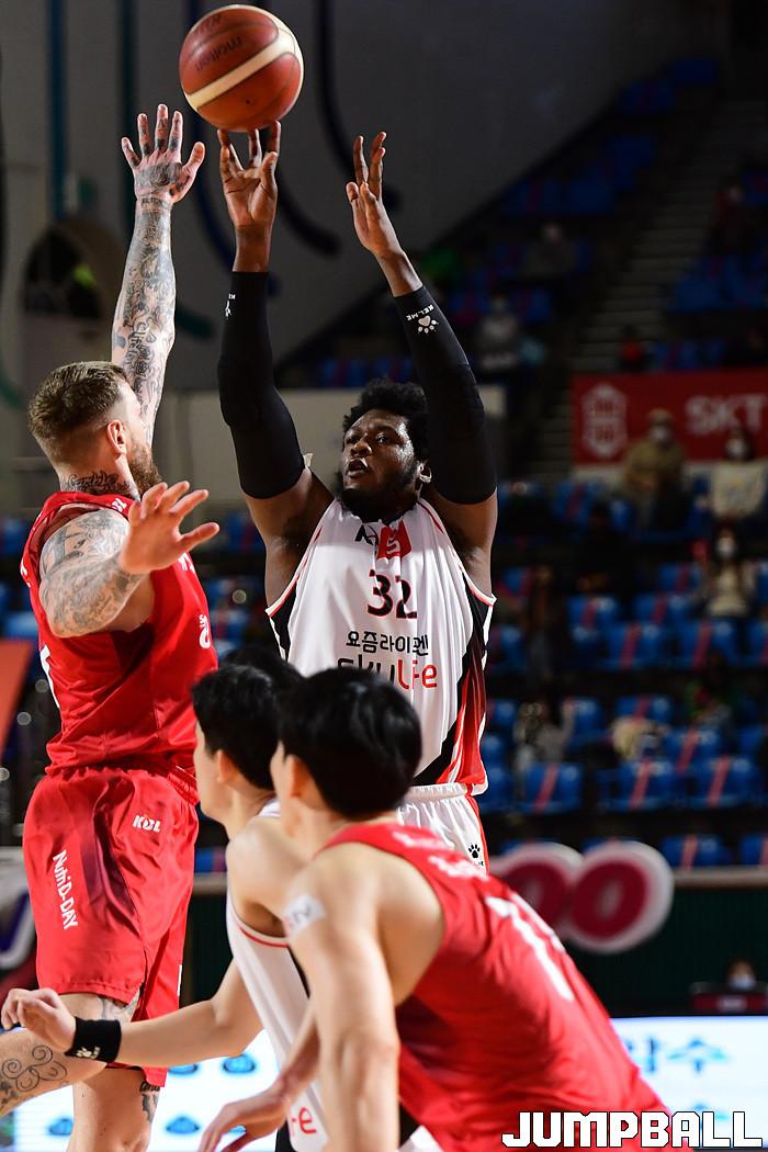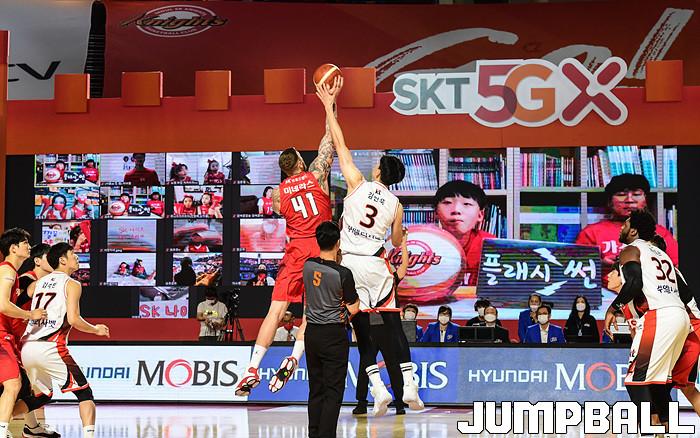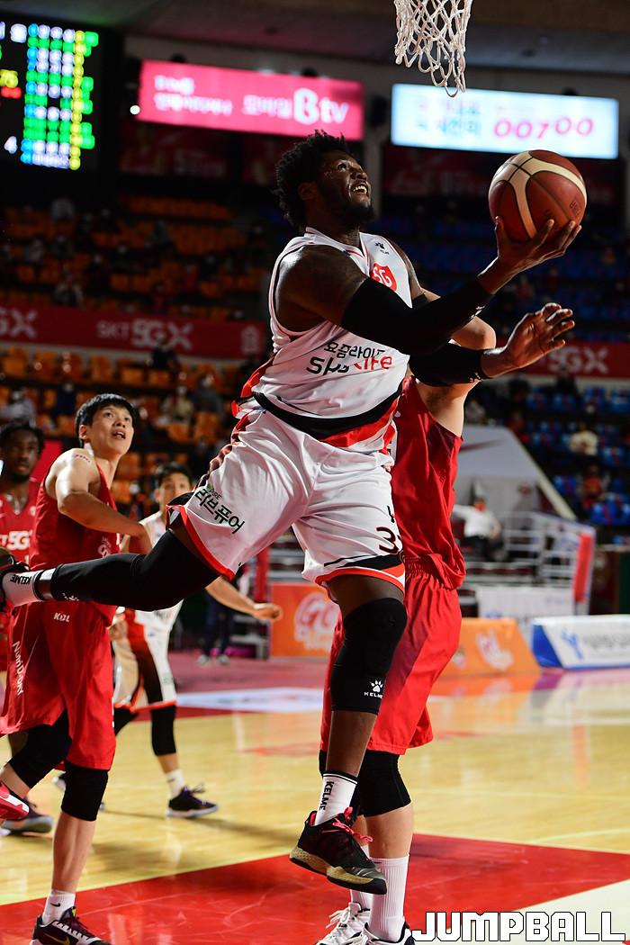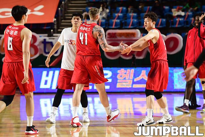 [점프볼=잠실학생/박상혁 기자] 25일 잠실학생체육관에서 열린 2020-2021 현대모비스 프로농구 서울 SK와 부산 KT의 경기, SK가 연장까지가는 접전끝에 KT에 92-88로 승리했다. SK와 KT 경기 화보