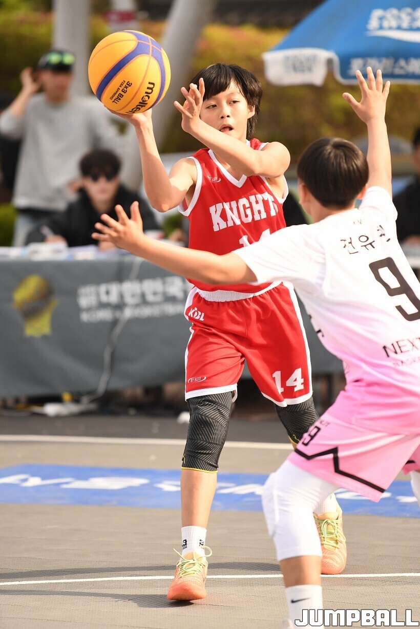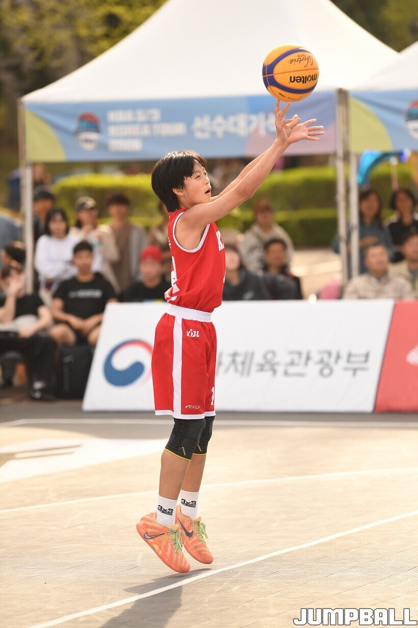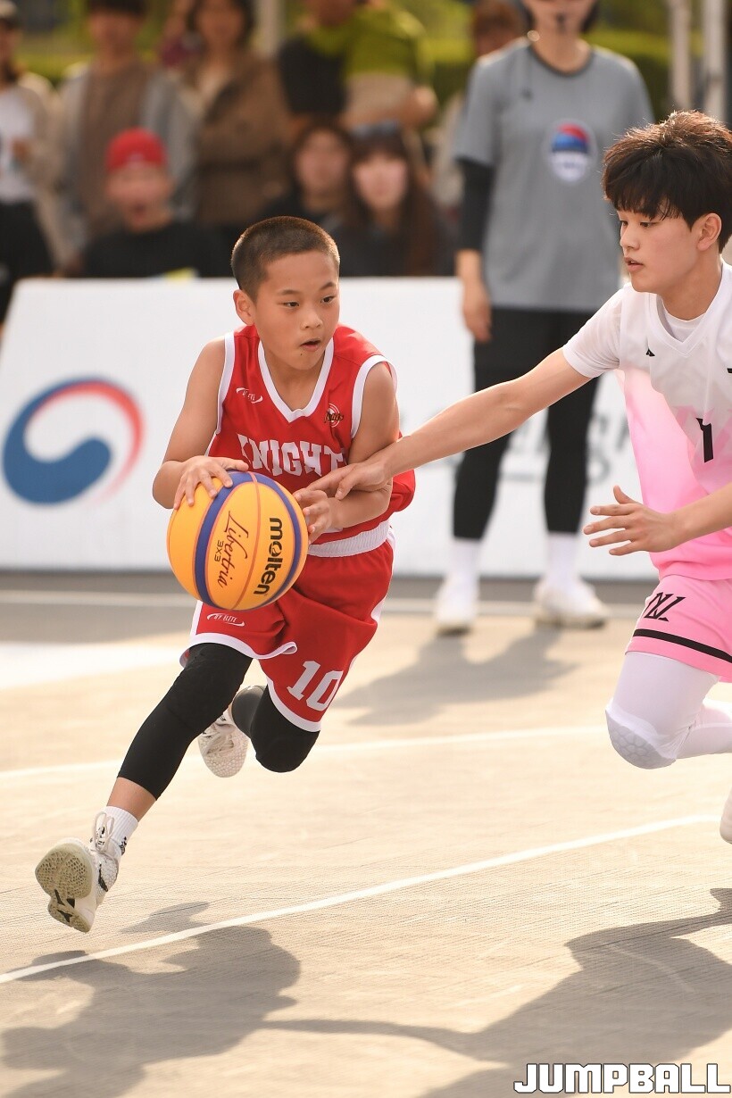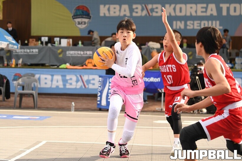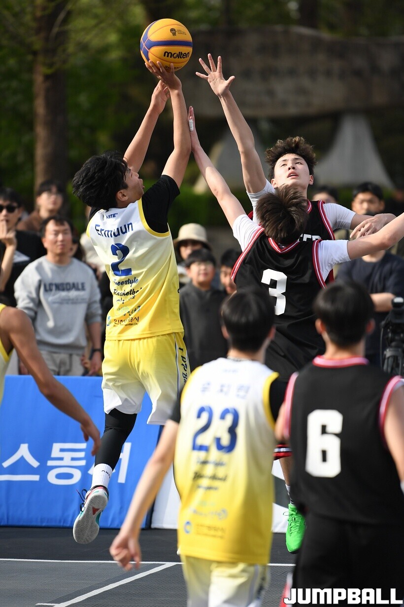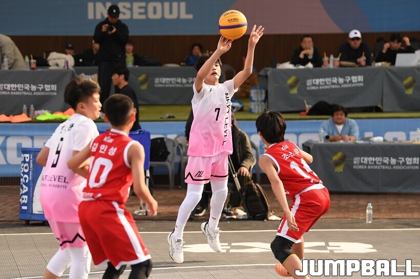 [점프볼=서울/유용우 기자] 12일 서울어린이대공원 열린무대 앞 특설코트에서 KBA 3x3 코리아투어 2026 서울대회 2일차 경기가 열렸다. 초등부, 중등부, 고등부, 오픈부, 여자오픈부 5개 종별 61개팀 234명이 참가했다. KBA 3x3 코리아투어 2026 서울대회 참가 선수들이 본선 토너먼트에 돌입하여 치열한 경쟁을 펼쳤다.