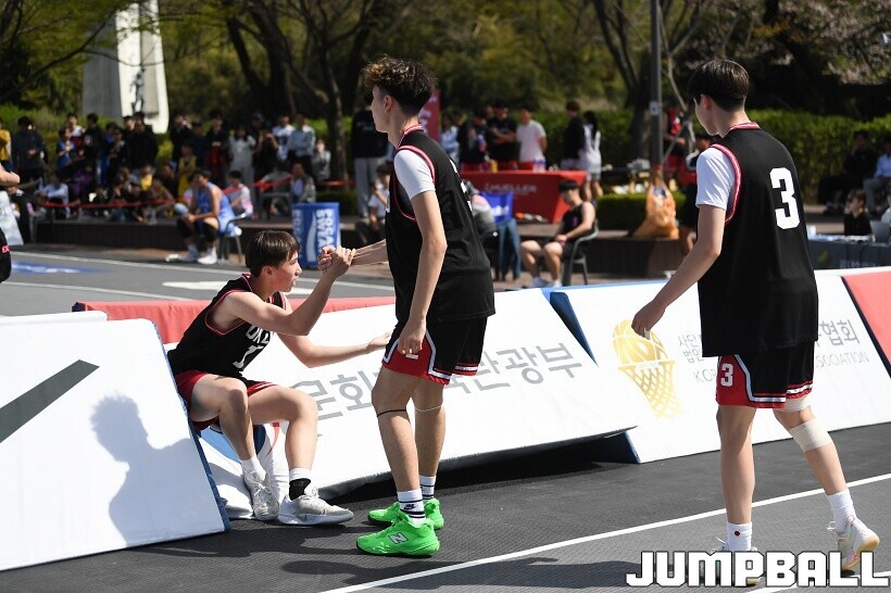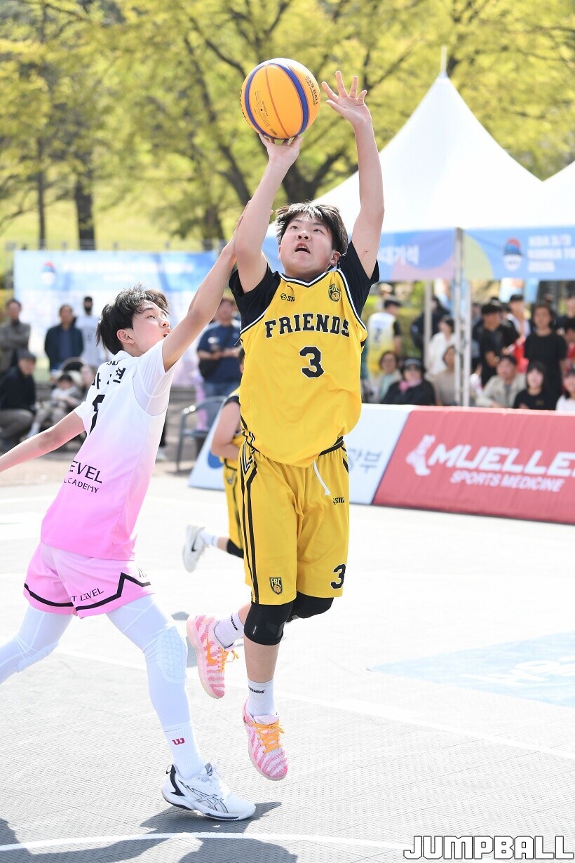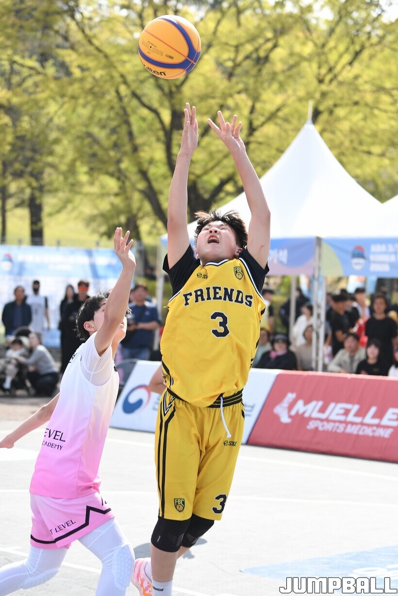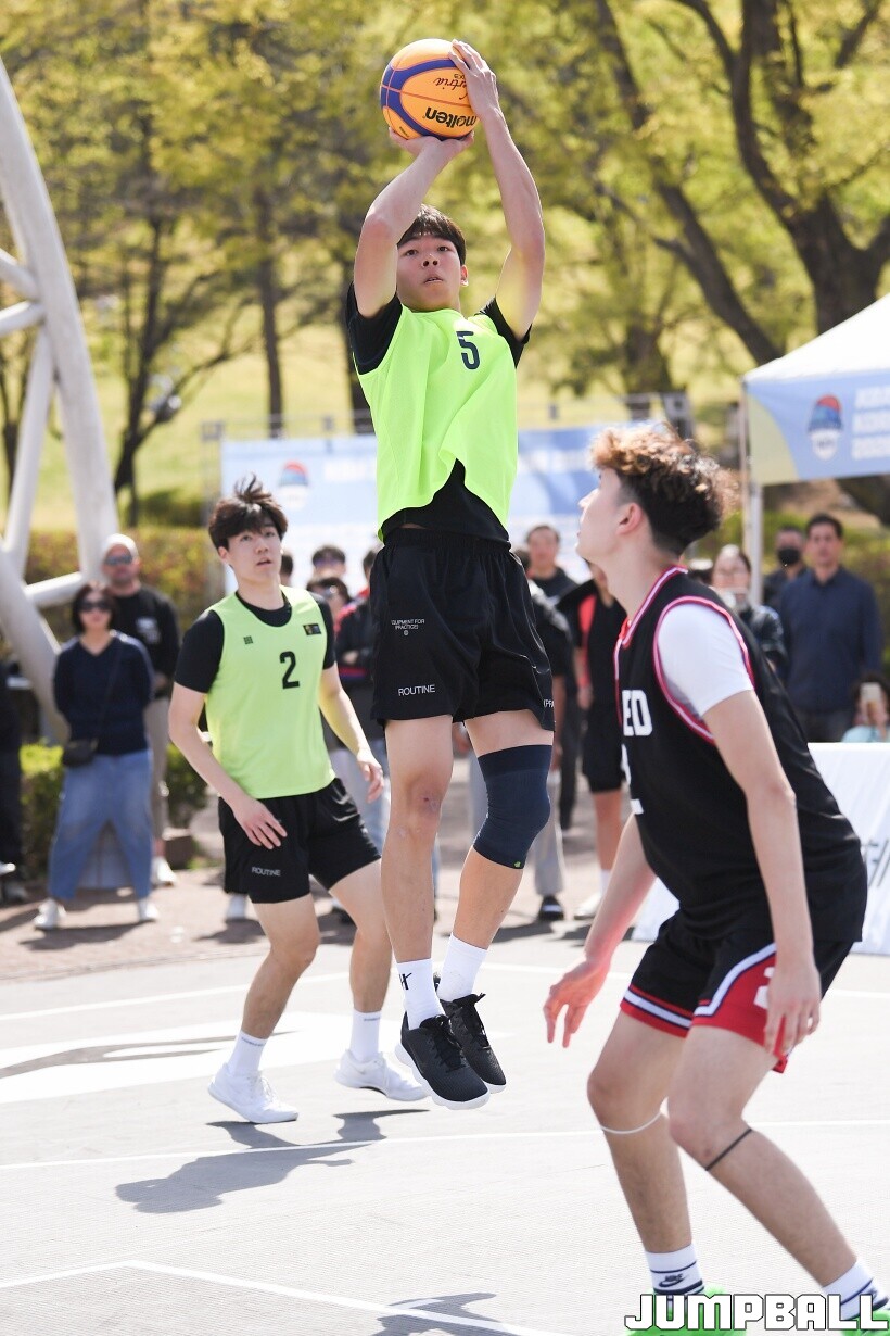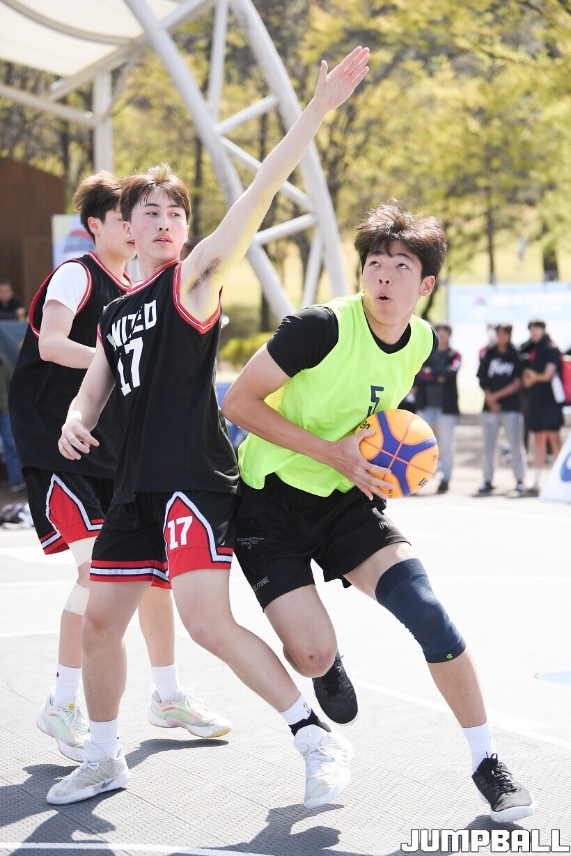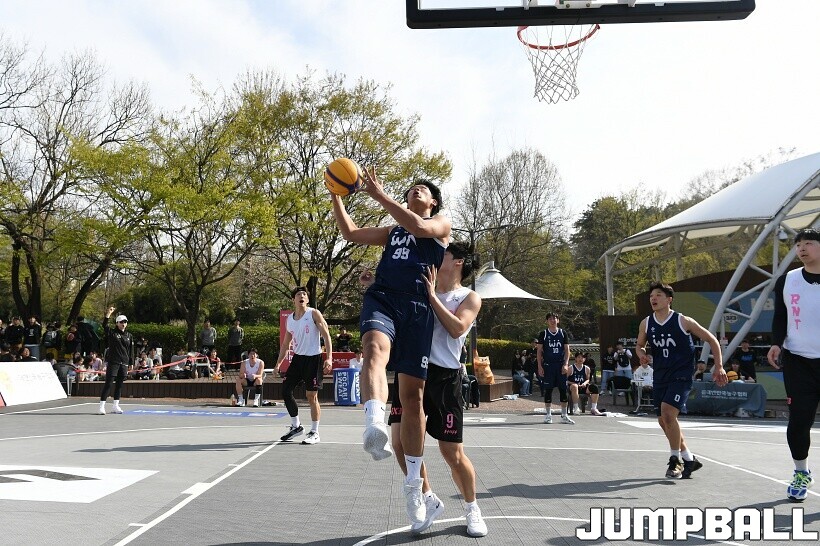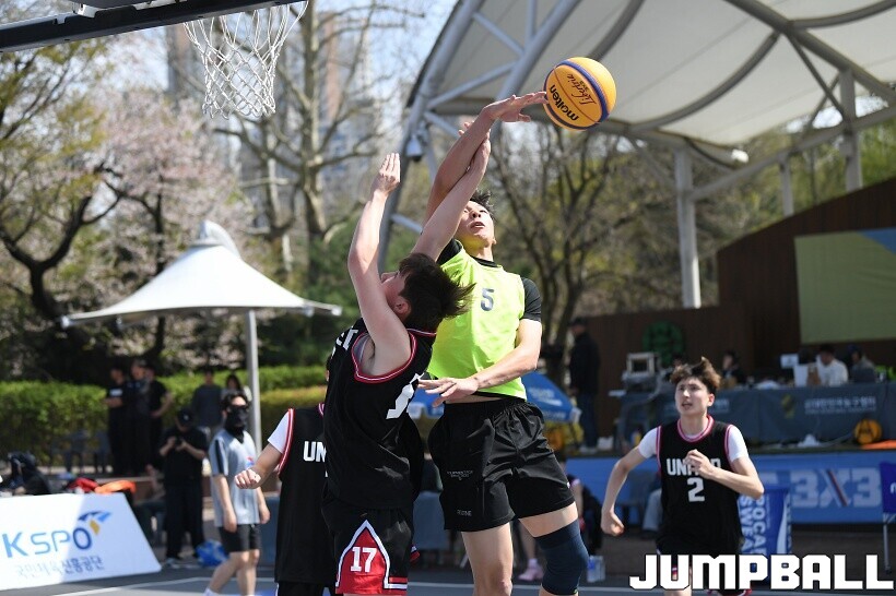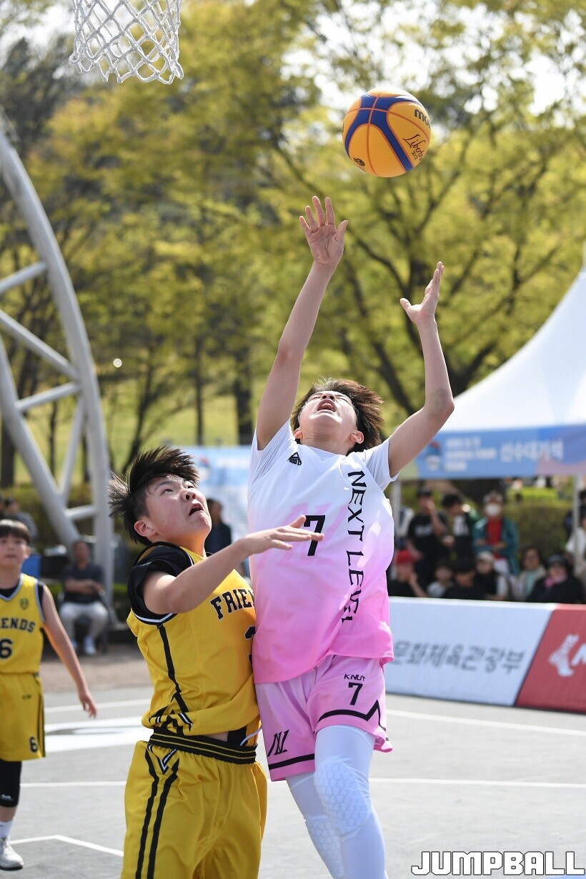 [점프볼=서울/유용우 기자] 12일 서울어린이대공원 열린무대 앞 특설코트에서 KBA 3x3 코리아투어 2026 서울대회 2일차 경기가 열렸다. 초등부, 중등부, 고등부, 오픈부, 여자오픈부 5개 종별 61개팀 234명이 참가했다. KBA 3x3 코리아투어 2026 서울대회 참가 선수들이 본선 토너먼트에 돌입하여 치열한 경쟁을 펼쳤다.