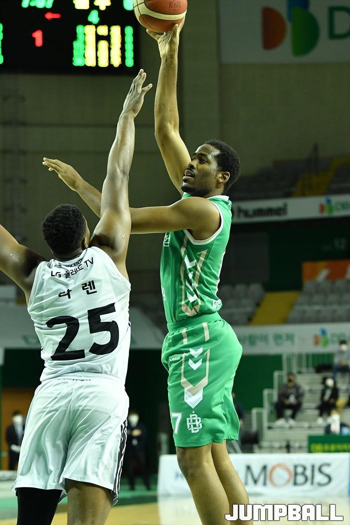 [점프볼=원주/유용우 기자] 10일 원주 종합체육관에서 열린 2020-2021 현대모비스 프로농구 원주 DB와 창원 LG의 경기, DB 얀테 메이튼이 공격하고 있다.