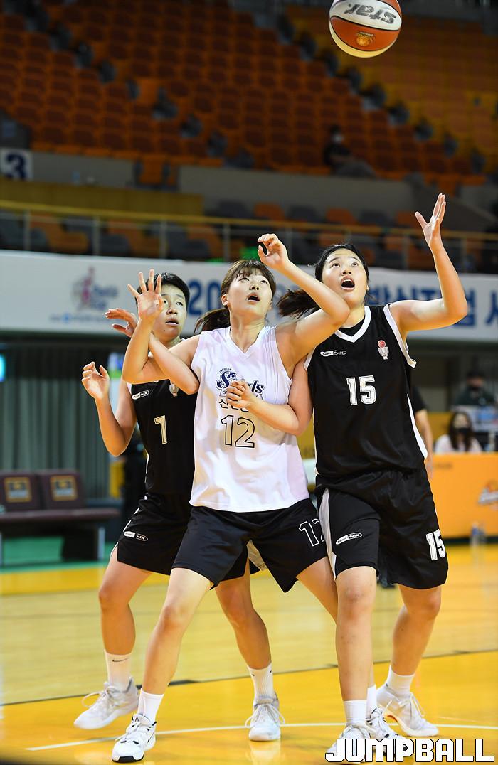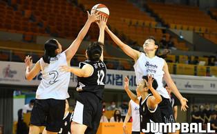 [점프볼=청주/문복주 기자] 17일 청주체육관에서 열린 '2020 우리은행 박신자컵 서머리그' 대학선발과 신한은행의 경기, 신한은행 김하나가 리바운드 자리를 다투고 있다.