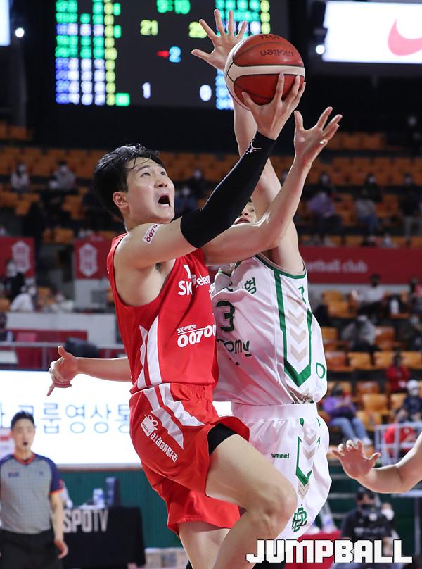 서울 SK는 24일 잠실학생체육관에서 열린 2021-2022 KGC인삼공사 정관장 프로농구 원주 DB와의 경기에서 95-68로 승리했다.