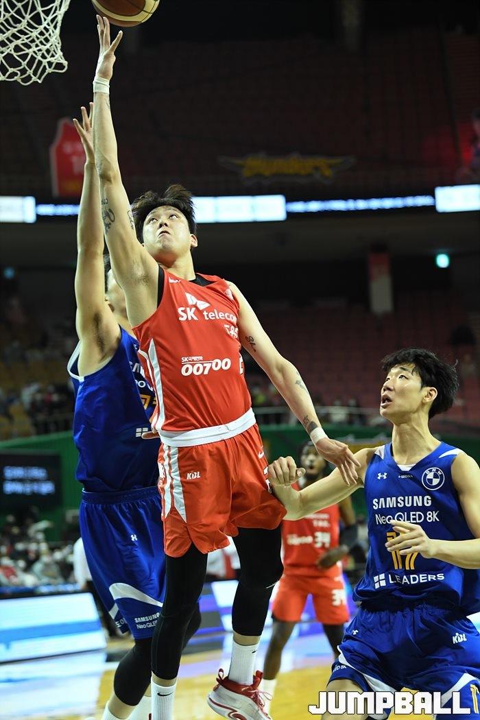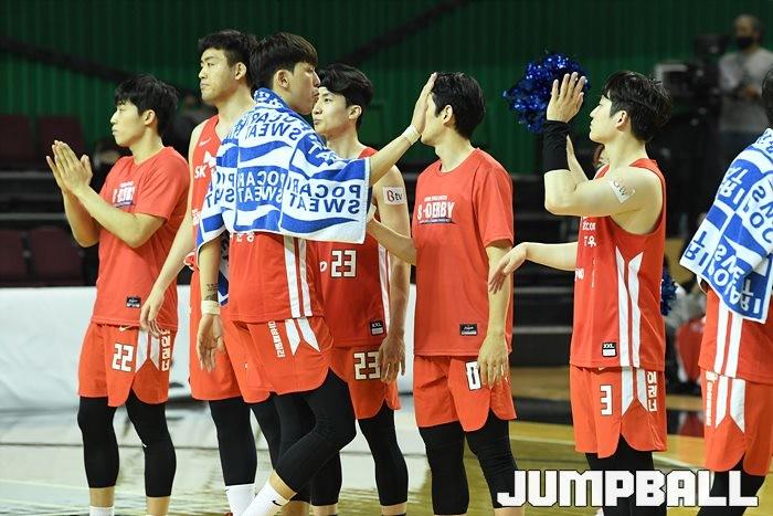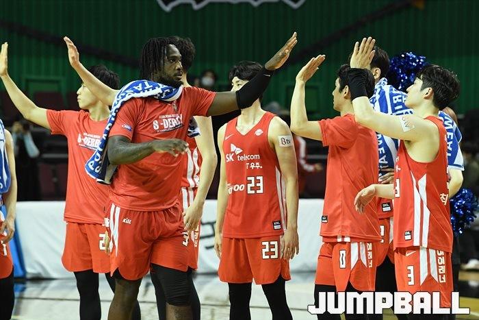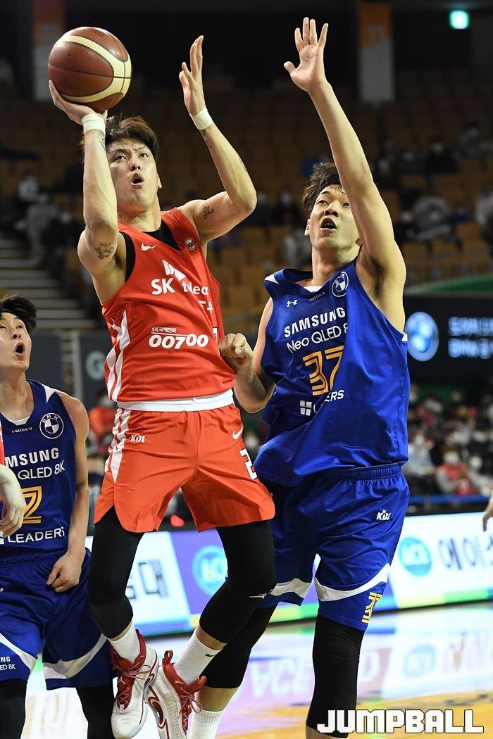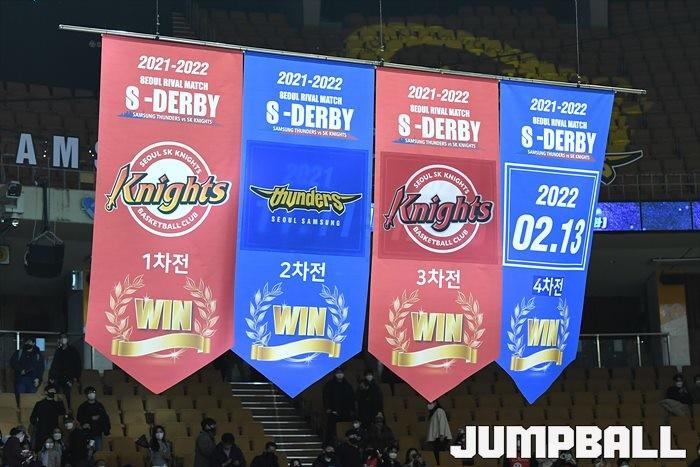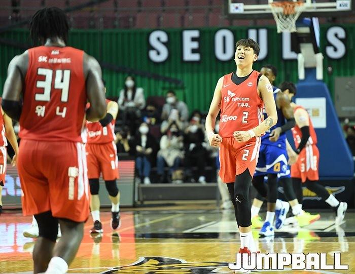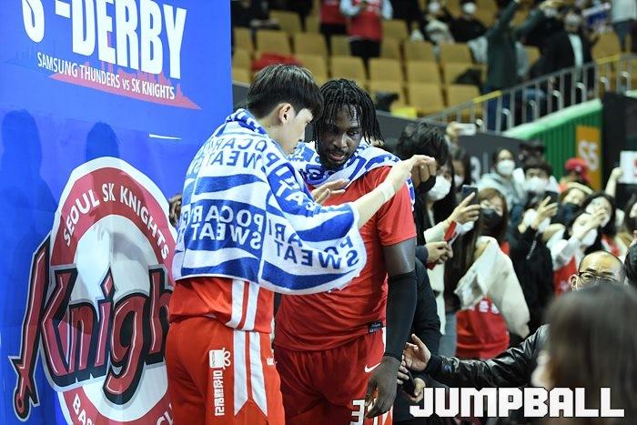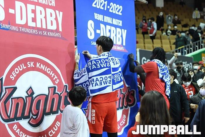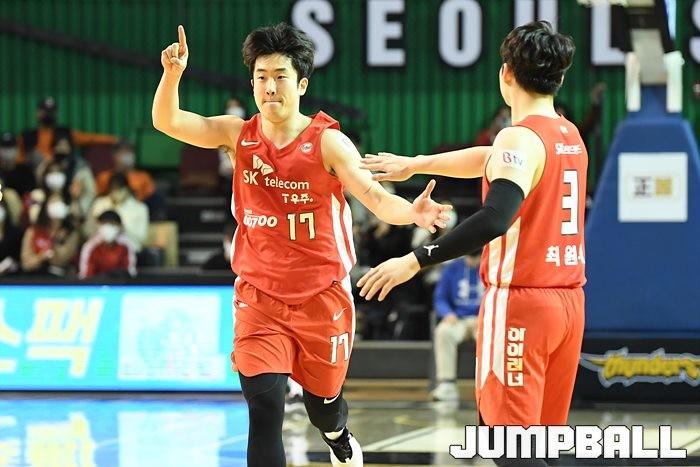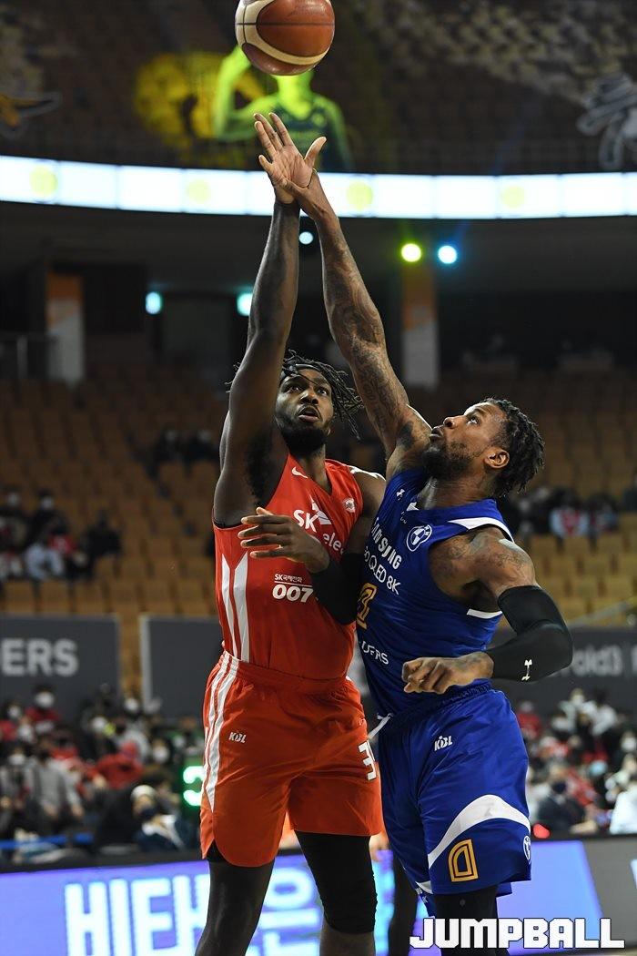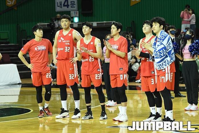 13일 잠실실내체육관에서 열린 2021-2022 KGC인삼공사 정관장 프로농구 서울 삼성과 서울 SK의 S-더비 4차전, SK가 98-74로 삼성에 승리했다.