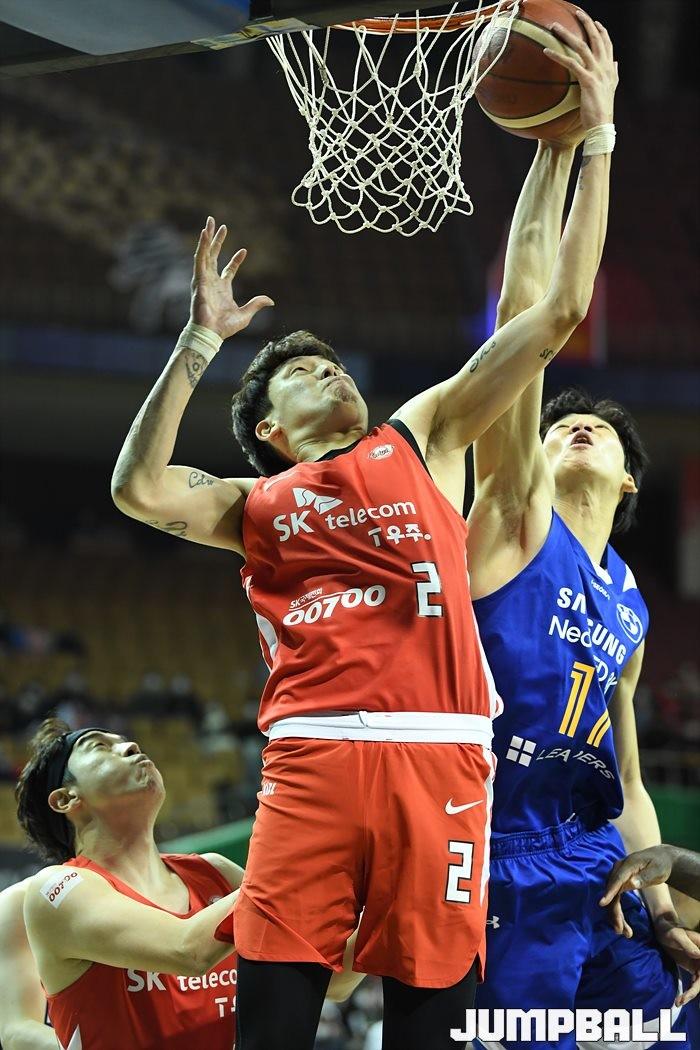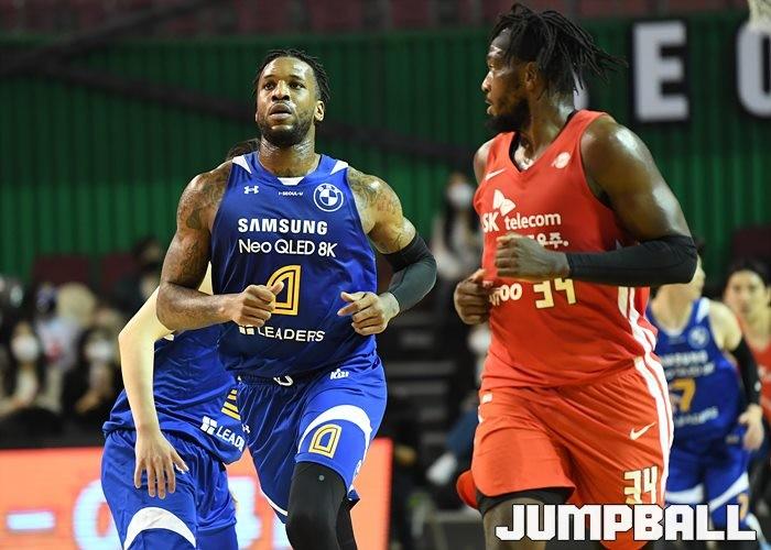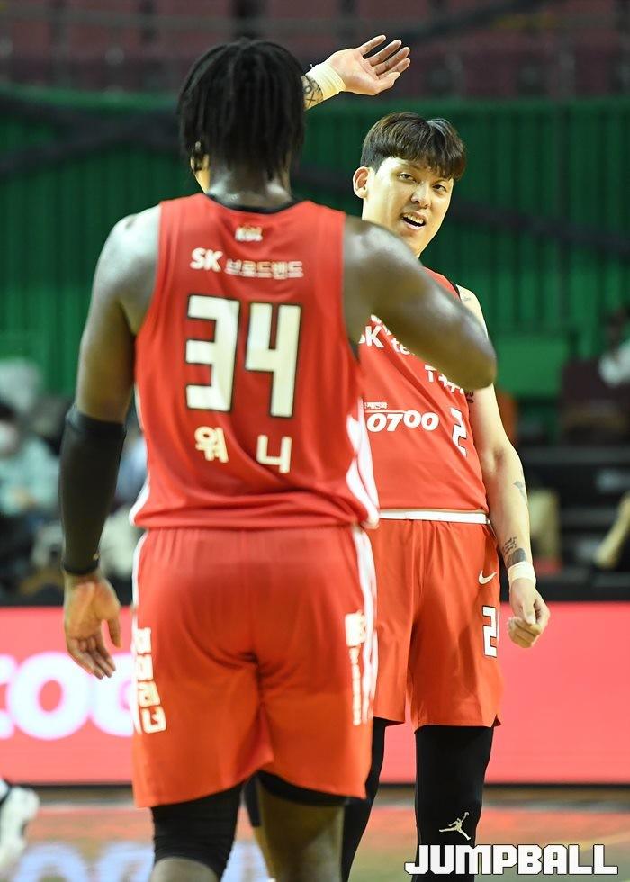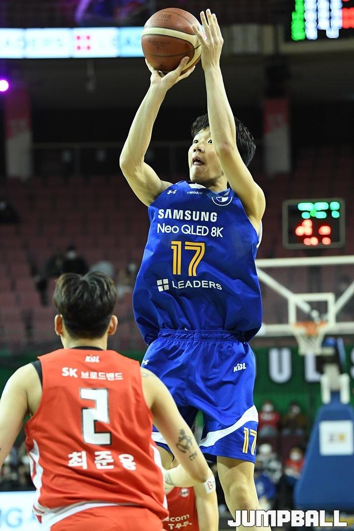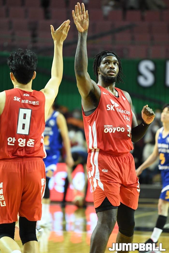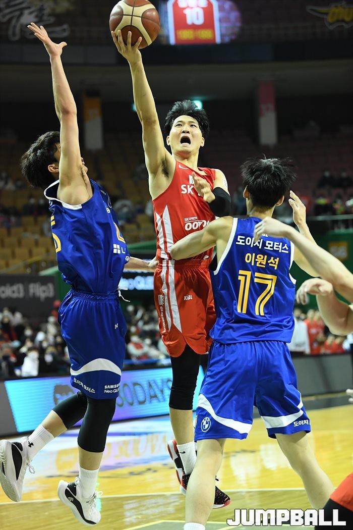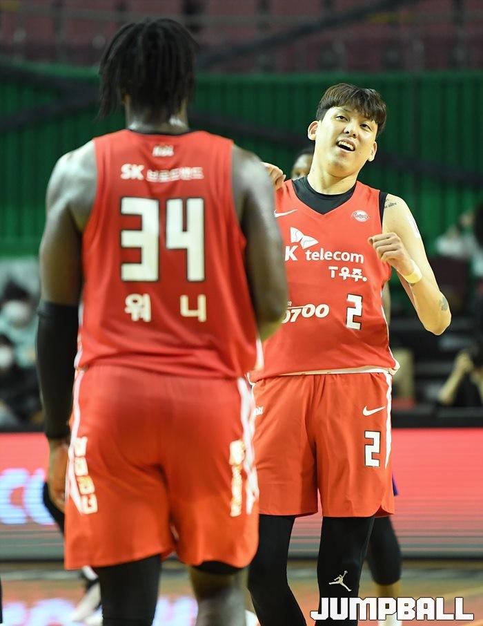 13일 잠실실내체육관에서 열린 2021-2022 KGC인삼공사 정관장 프로농구 서울 삼성과 서울 SK의 S-더비 4차전, SK가 98-74로 삼성에 승리했다.