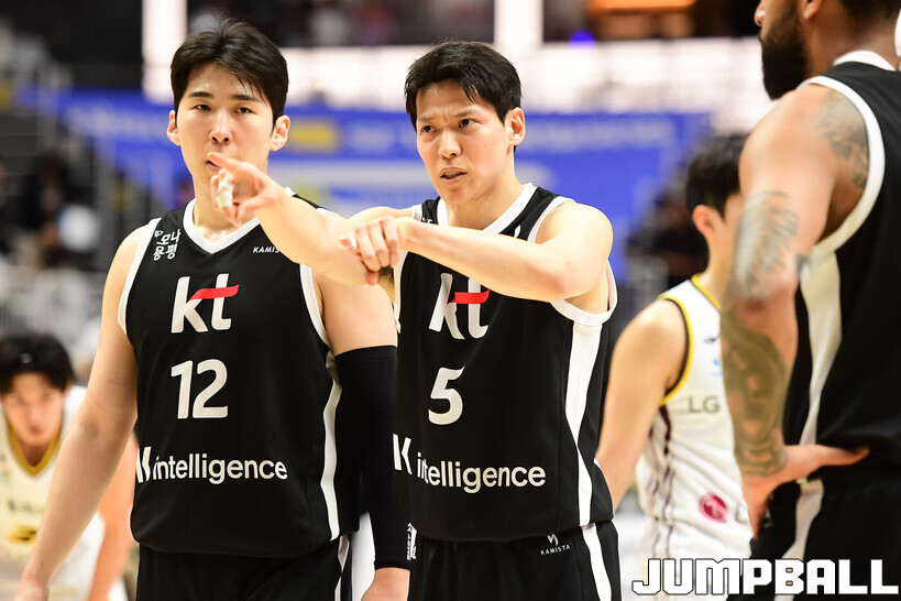 [점프볼=수원/박상혁 기자] 3일 수원 KT 소닉붐 아레나에서 열린 2025-2026 LG전자 프로농구 수원 KT와 창원 LG의 경기, KT 김선형이 지시를 하고 있다.