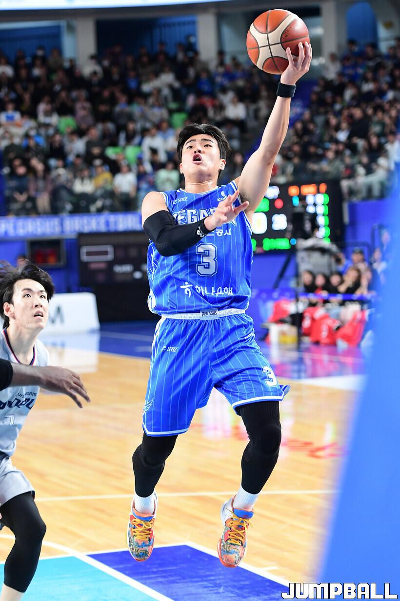 [점프볼=대구/박상혁 기자] 16일 대구체육관에서 열린 2025-2026 LG전자 프로농구 대구 한국가스공사와 울산 현대모비스의 경기, 한국가스공사 정성우가 레이업슛을 시도하고 있다.