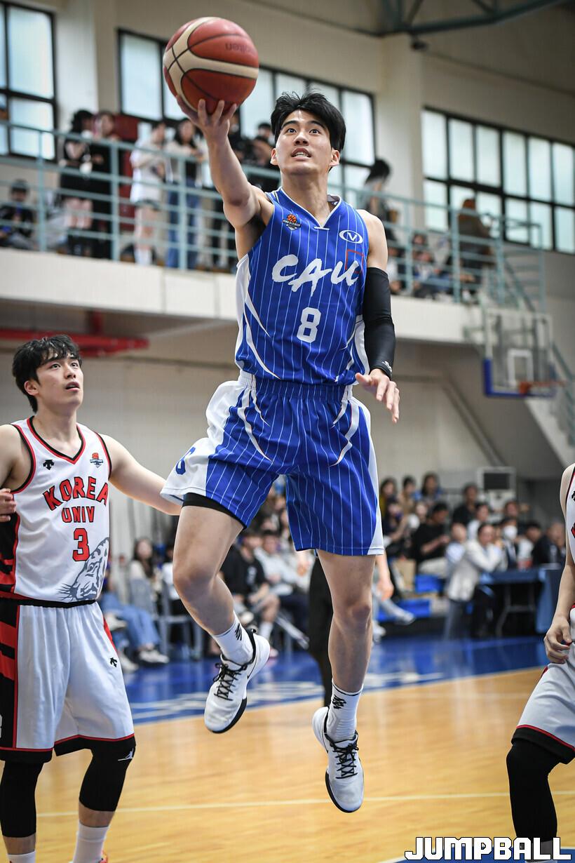 [점프볼=안성/박상혁 기자] 7일 중앙대 안성캠퍼스 체육관에서 열린 2023 KUSF 대학농구 U-리그 중앙대와 고려대의 경기, 중앙대 김두진이 레이업슛을 시도하고 있다.