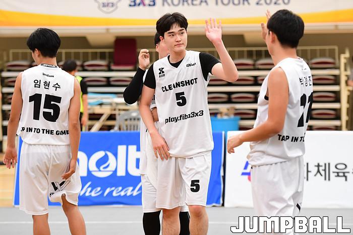 [점프볼=양산/박상혁 기자] 26일 양산실내체육관에서 열린 'KB국민은행 LiiV 3X3 코리아투어 2020 양산대회' 2일차 경기, 고등부 클린샷 선수들이 경기에서 승리한후 하이파이브를 하고 있다.