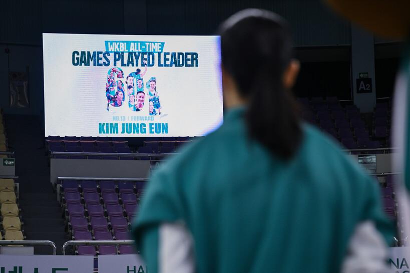 | ▲WKBL 통산 최다 경기 출전 1위(601경기)에 오른 김정은(하나은행) |