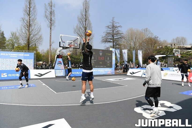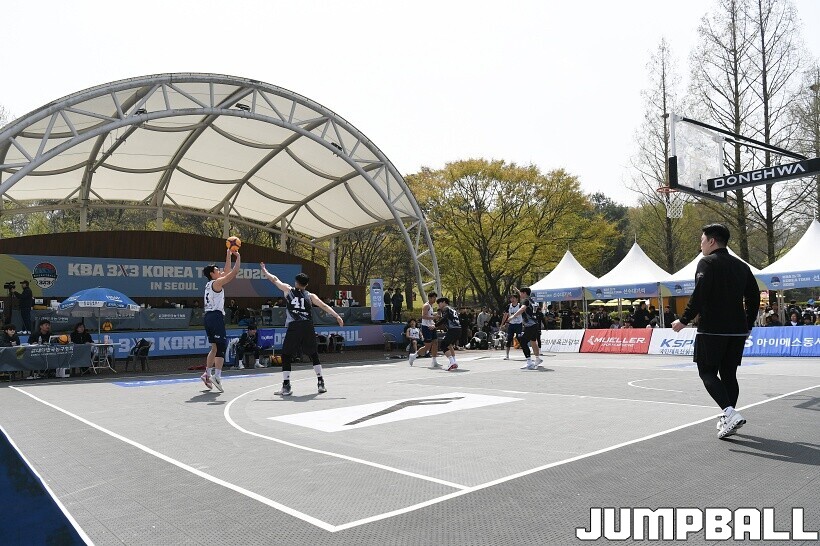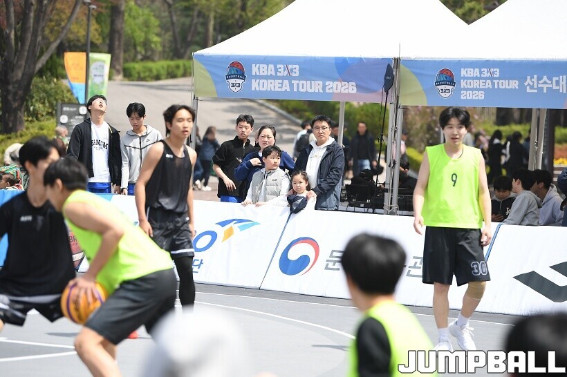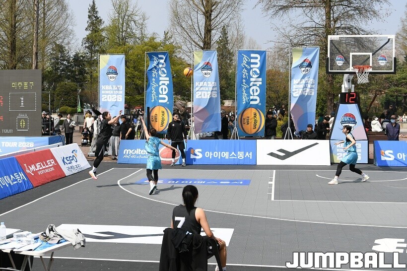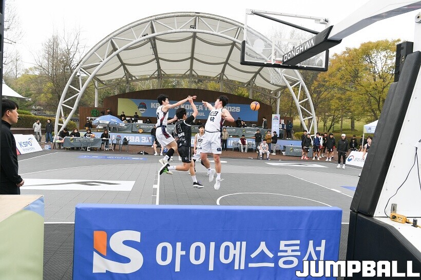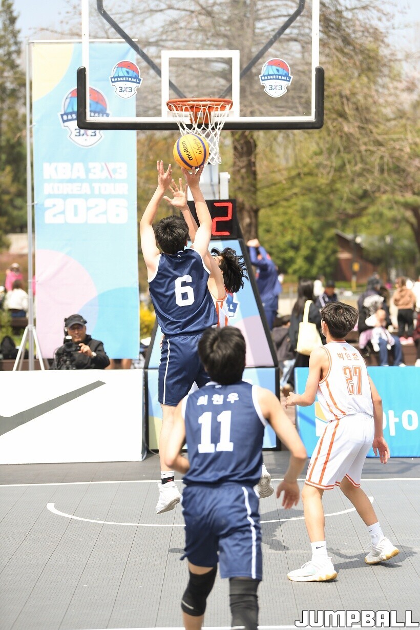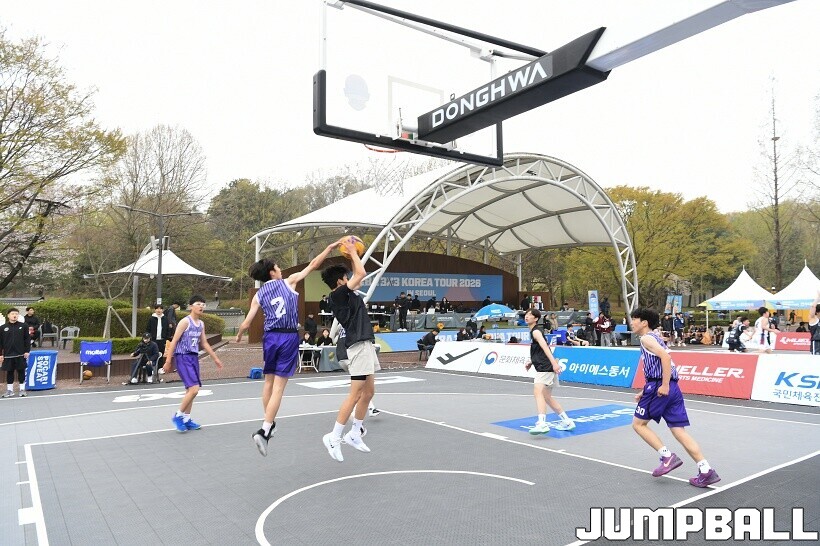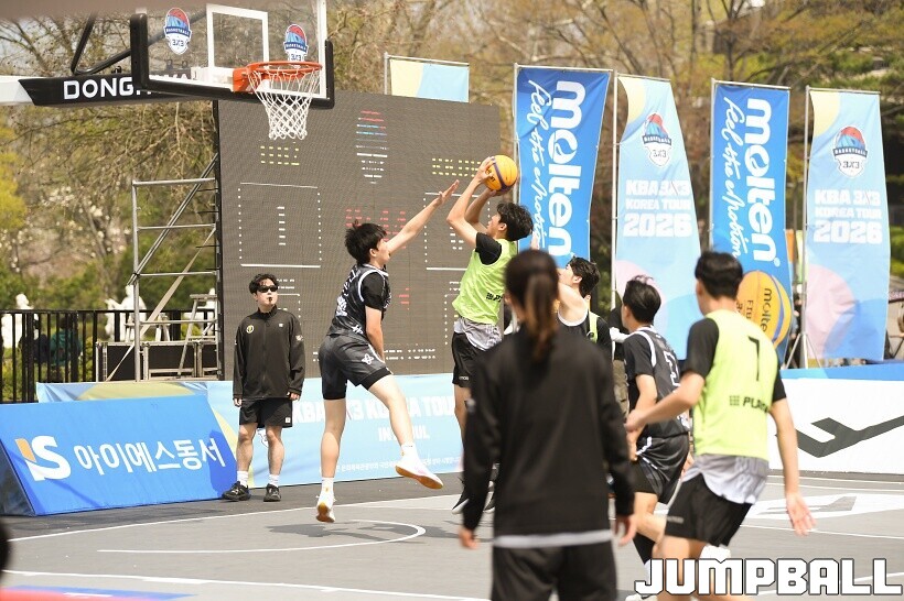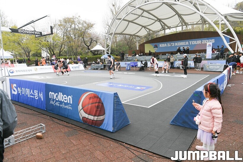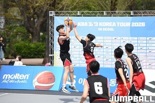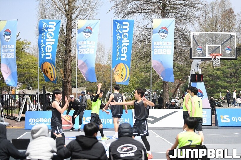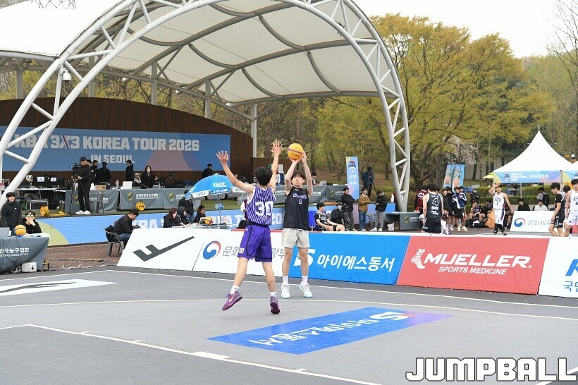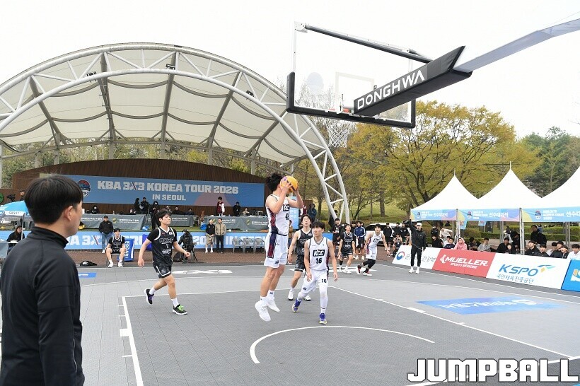 [점프볼=서울/유용우 기자] 11일 서울어린이대공원 열린무대 앞 특설코트에서 KBA 3x3 코리아투어 2026 서울대회 1일차 경기가 열렸다. 초등부, 중등부, 고등부, 오픈부, 여자오픈부 5개 종별 61개팀 234명이 참가하여 이틀에 걸쳐 진행된다. KBA 3x3 코리아투어 2026 서울대회 참가 선수들이 치열한 경쟁을 펼치고 있다. KBA 3x3 코리아투어 2026 서울대회 1일차 화보 01