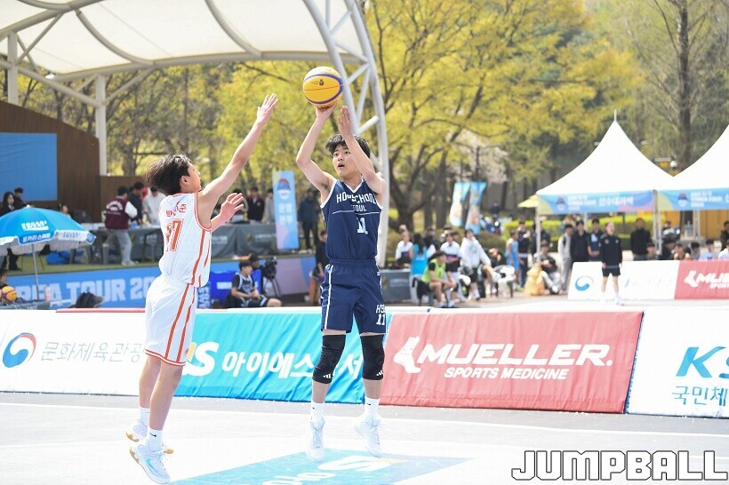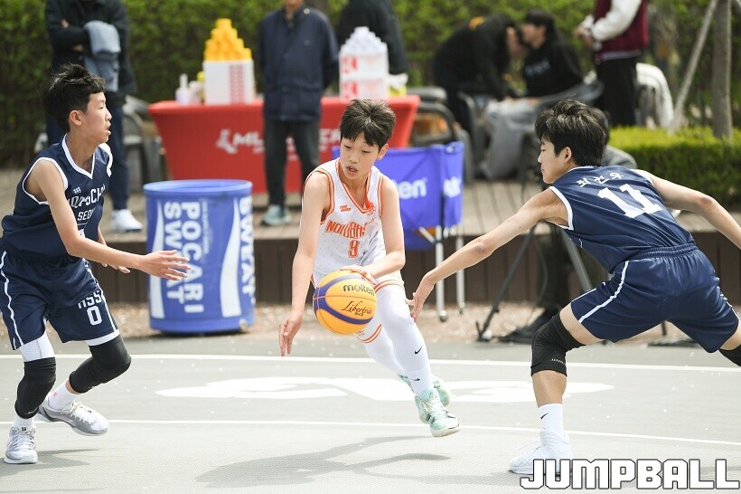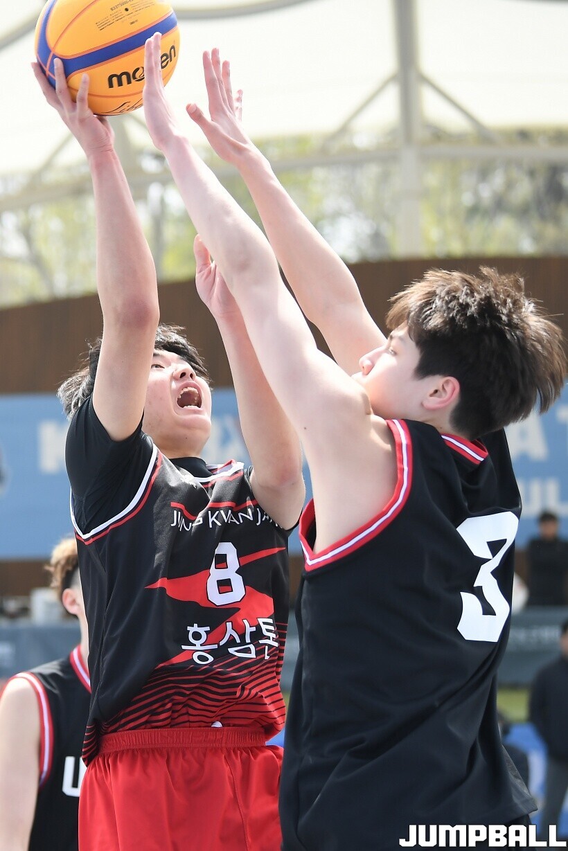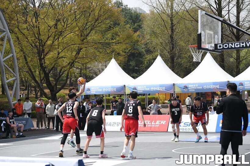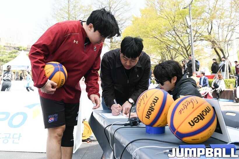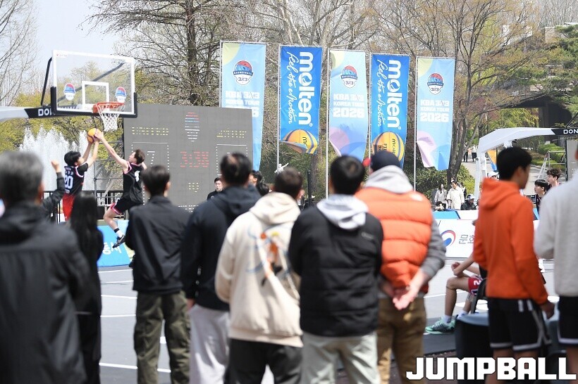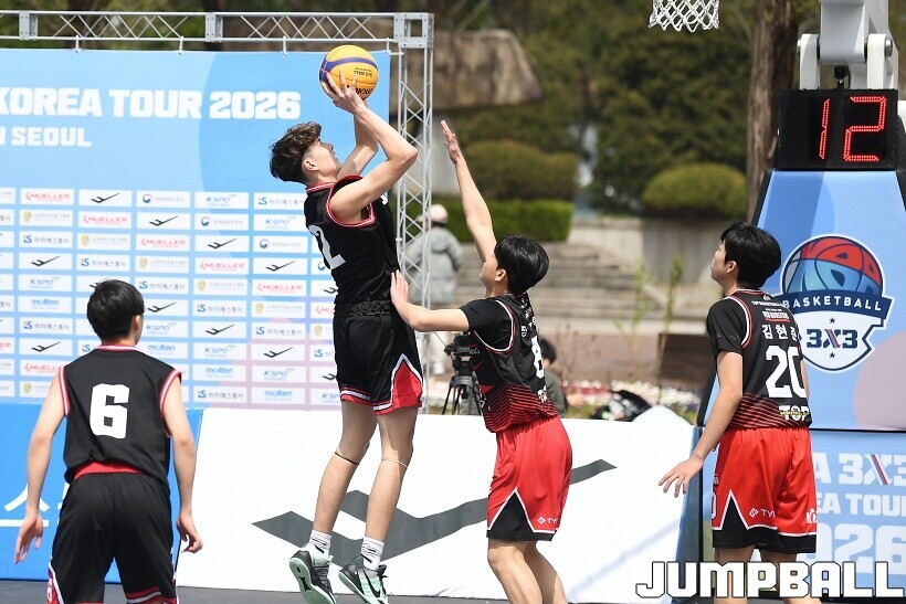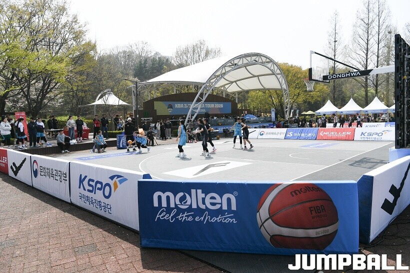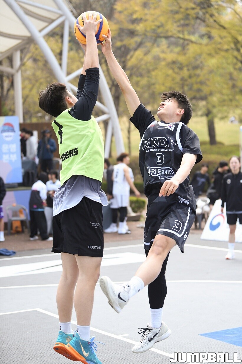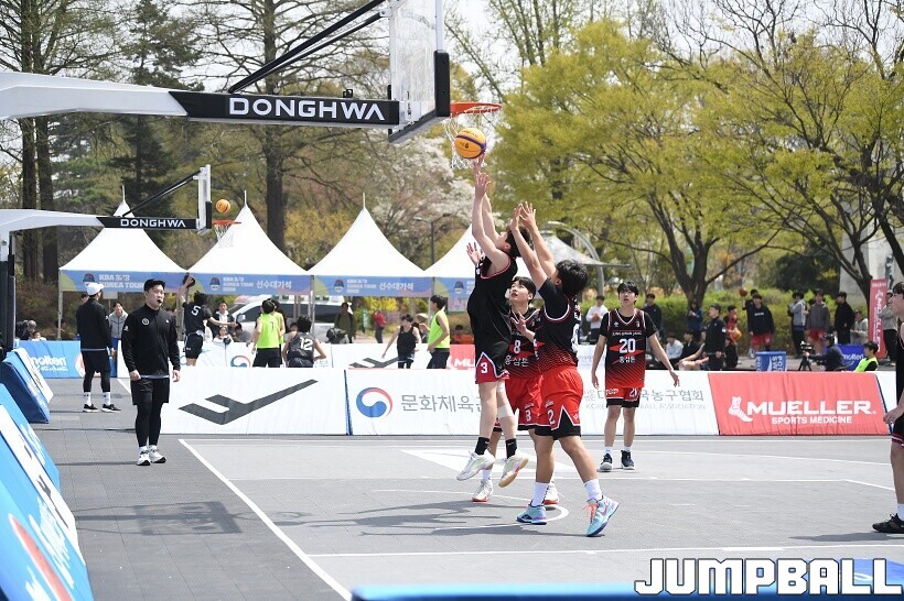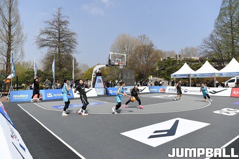 [점프볼=서울/유용우 기자] 11일 서울어린이대공원 열린무대 앞 특설코트에서 KBA 3x3 코리아투어 2026 서울대회 1일차 경기가 열렸다. 초등부, 중등부, 고등부, 오픈부, 여자오픈부 5개 종별 61개팀 234명이 참가하여 이틀에 걸쳐 진행된다. KBA 3x3 코리아투어 2026 서울대회 참가 선수들이 치열한 경쟁을 펼치고 있다. KBA 3x3 코리아투어 2026 서울대회 1일차 화보 01