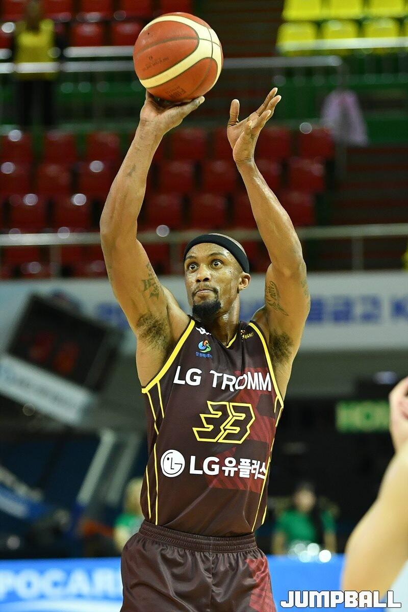 11일 군산월명체육관에서 열린 2023 MG새마을금고 KBL 컵대회 한국가스공사와 LG의 예선 경기, LG 단테 커닝햄이 슛을 시도하고 있다. [점프볼=군산/유용우 기자]