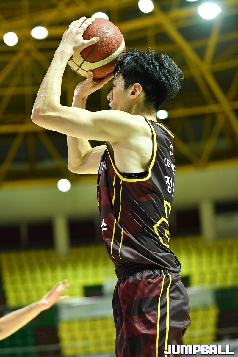11일 군산월명체육관에서 열린 2023 MG새마을금고 KBL 컵대회 한국가스공사와 LG의 예선 경기, LG 정인덕이 3점슛을 던지고 있다. [점프볼=군산/유용우 기자]