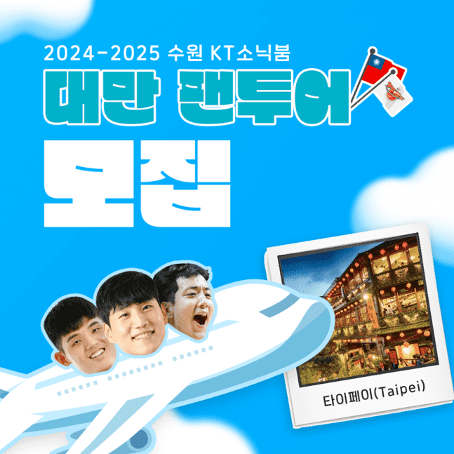 수원 KT는 17일 보도자료를 통해 "2024-2025시즌 대만 전지훈련에 함께할 'KT소닉붐 대만 팬투어' 참가자를 찾는다"고 밝혔다.