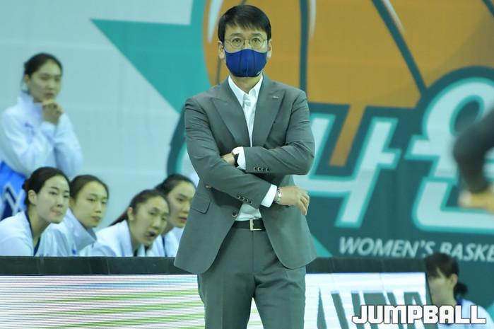 [점프볼=부천/유용우 기자] 22일 부천체육관에서 열린 'KB국민은행 Liiv M 2020-2021 여자프로농구' 하나원큐와 신한은행의 경기, 신한은행 정상일 감독이 경기를 지켜보고 있다.