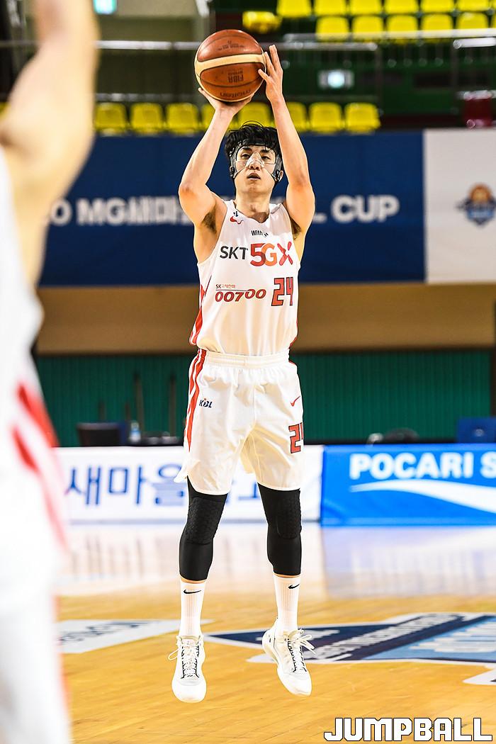 [점프볼=군산/박상혁 기자] 26일 군산월명체육관에서 열린 '2020 MG새마을금고 KBL컵' 서울 SK와 안양 KGC인삼공사의 준결승 경기, SK 배병준이 3점슛을 시도하고 있다.