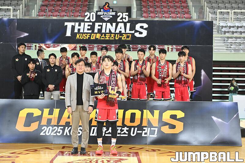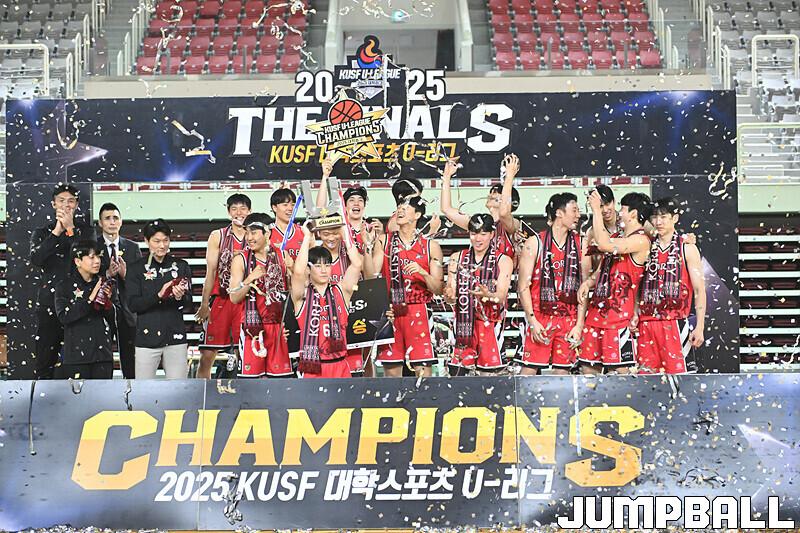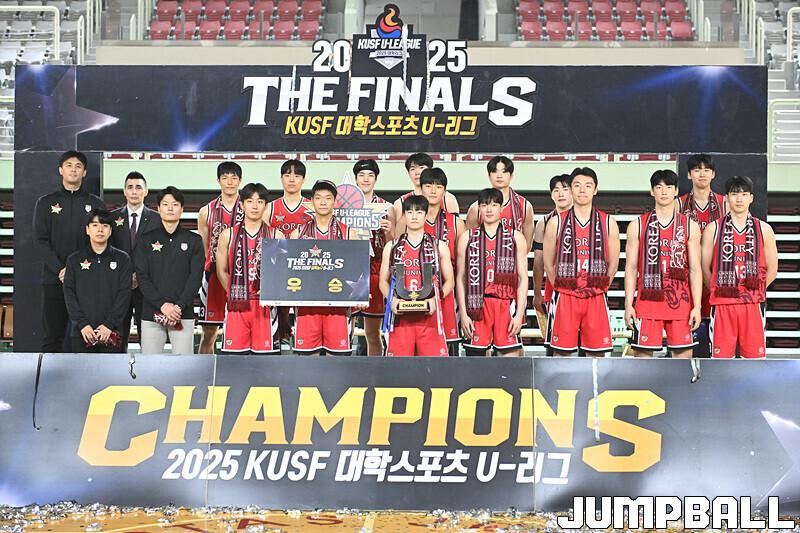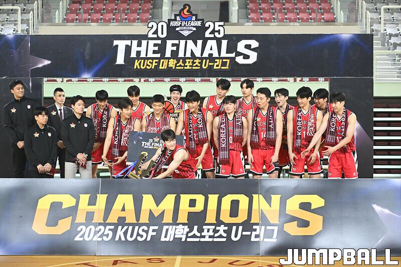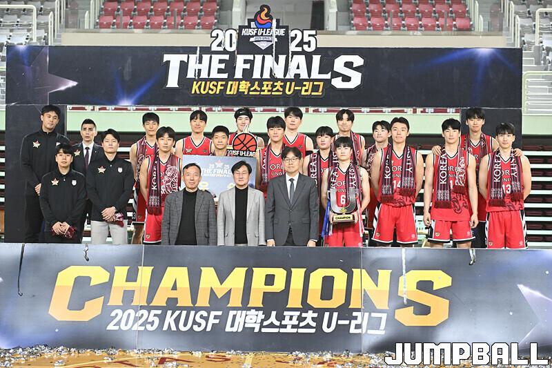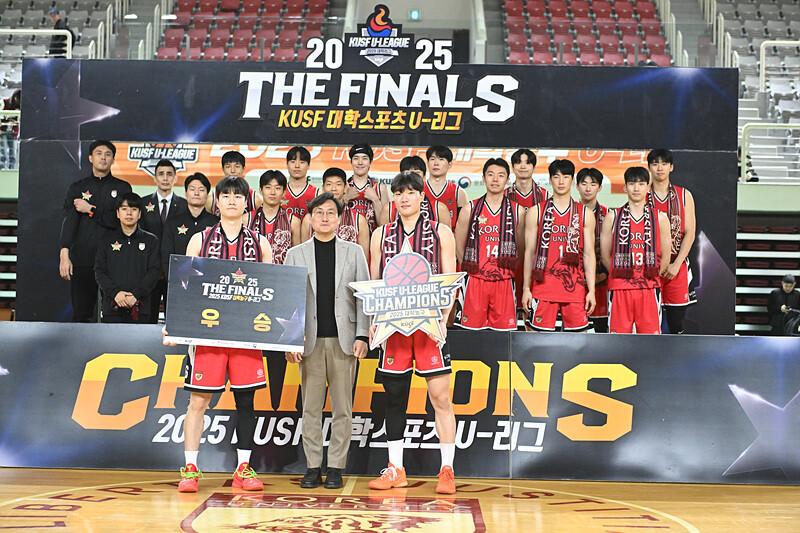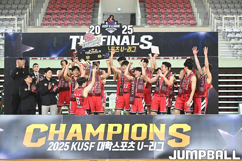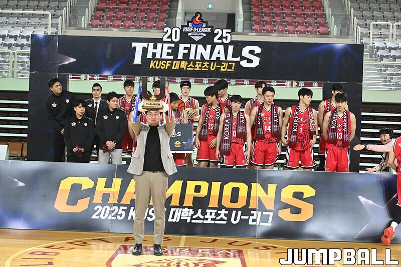 [점프볼=안암/문복주 기자] 12일 고려대학교 화정체육관에서 2025 KUSF 대학농구 U-리그 남자 대학부 챔피언결정전으로 고려대와 성균관대의 경기, 고려대가 성균관대의 추격을 물리치고 68대60으로 우승을 차지하고 시상식을 가졌다.
