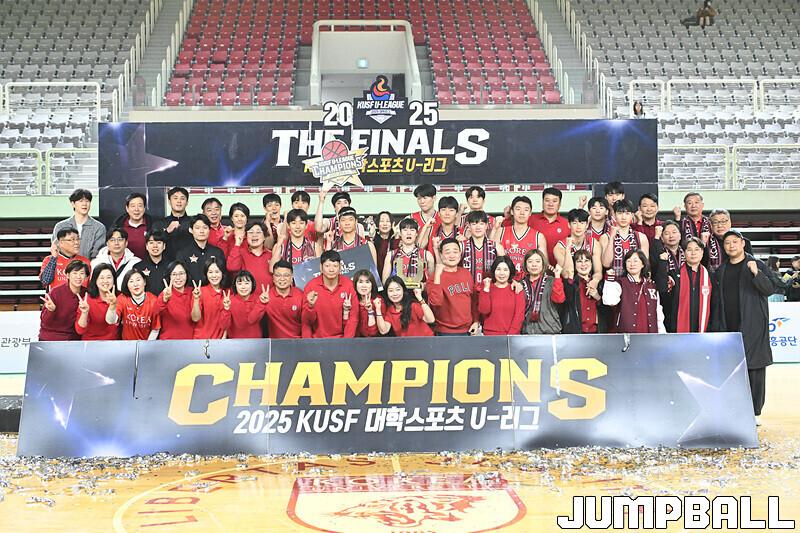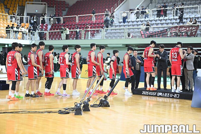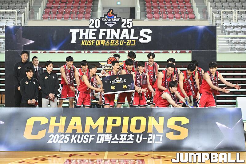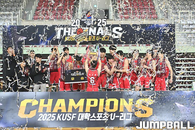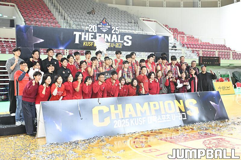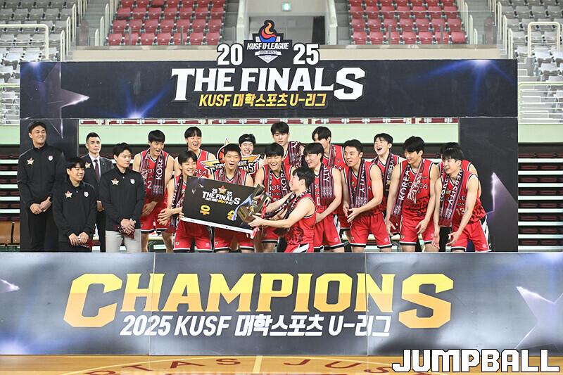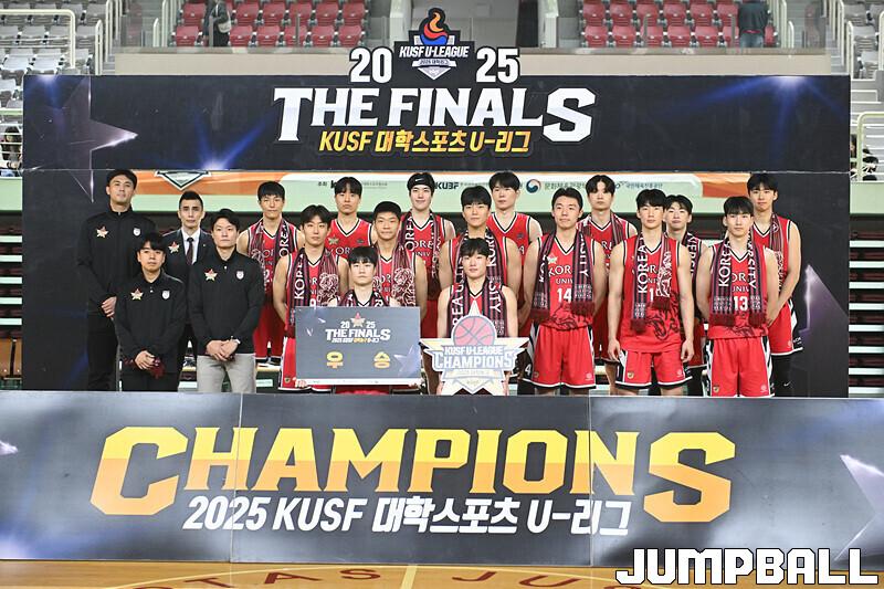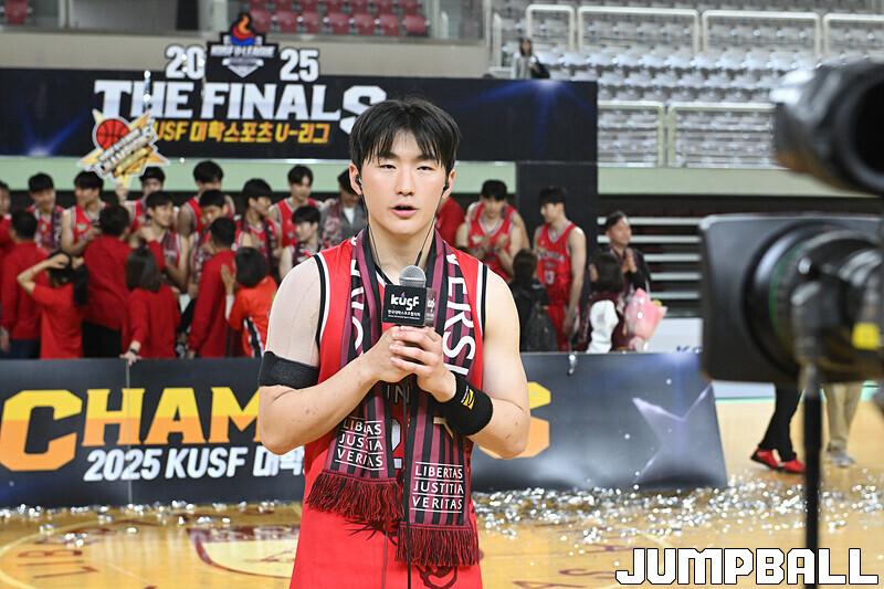 [점프볼=안암/문복주 기자] 12일 고려대학교 화정체육관에서 2025 KUSF 대학농구 U-리그 남자 대학부 챔피언결정전으로 고려대와 성균관대의 경기, 고려대가 성균관대의 추격을 물리치고 68대60으로 우승을 차지하고 시상식을 가졌다.
