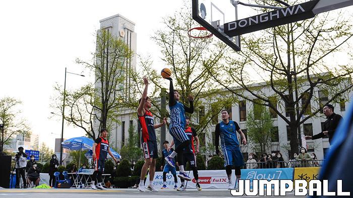 [점프볼=서울/박상혁 기자] 10일 서울신문사앞 특설코트에서 열린 KB국민은행 LIIV m 3X3 코리아투어 2021 서울 대회, 하늘내린인제 하도현이 레이업슛을 시도하고 있다.
