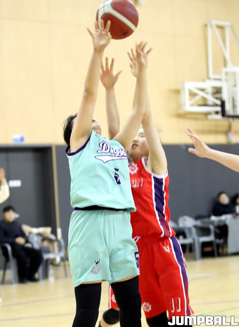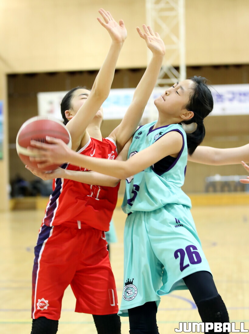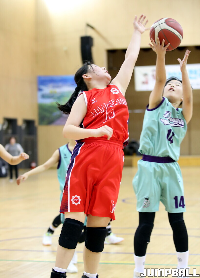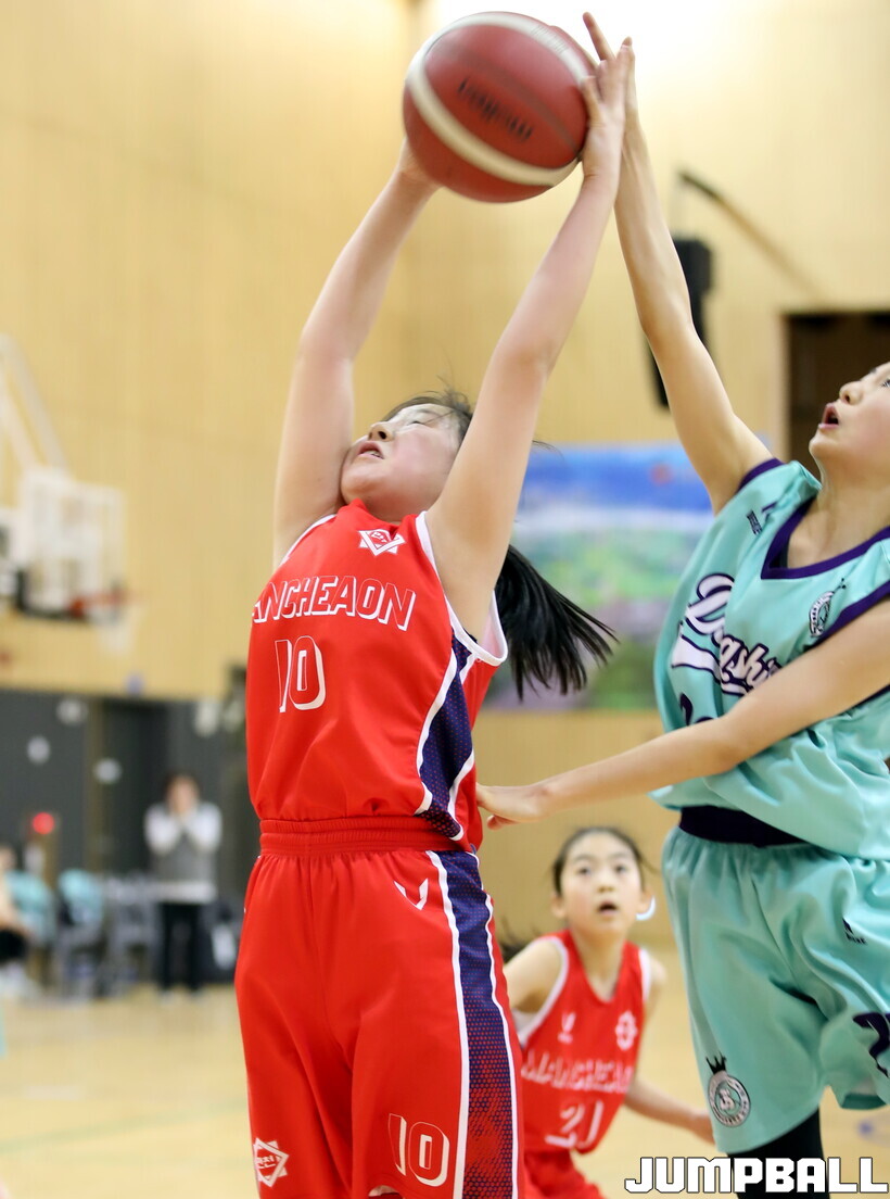 28일 충북 제천 어울림센터에서 열린 2026 전국 동계 한국초등학교농구연맹전 제천대회 5일차 여초부 경기. 온양 동신초가 42-21로 춘천 만천초에 큰 점수차로 승리했다.