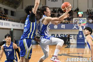 2일 연세대 신촌캠퍼스 체육관에서 열린 2023 KUSF 대학농구 U-리그 연세대와 중앙대의 경기, 연세대 윤호진 감독이 선수들에게 지시를 하고 있다.