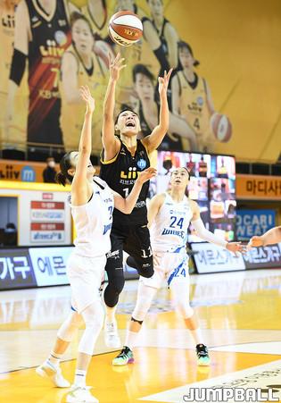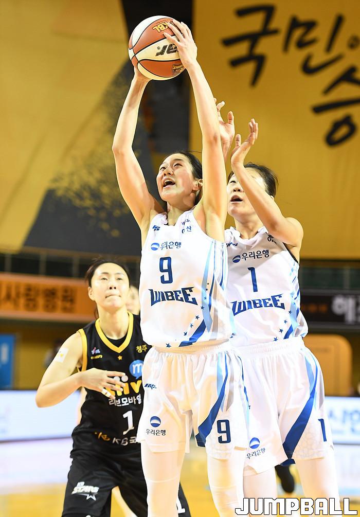 [점프볼=청주/문복주 기자] 21일 청주체육관에서 열린 KB국민은행 LiiV M 2020~2021 여자프로농구 청주 KB스타즈와 아산 우리은행의 경기, 우리은행 오승인이 수비리바운드를 잡아내고 있다.