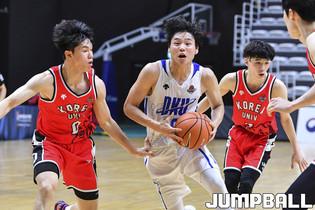 [점프볼=수원/홍기웅 기자] 6일 수원 서수원칠보체육관에서 열린 '2021 KUSF 대학농구 U-리그 3차대회' 명지대와 조선대의 경기. 조선대 최승우가 속공을 하기위해 빠르게 드리블을 치고 상대 코트로 달려나가고 있다.