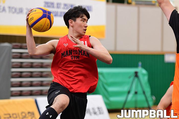 [점프볼=양산/박상혁 기자] 26일 양산실내체육관에서 열린 'KB국민은행 LiiV 3X3 코리아투어 2020 양산대회' 2일차 경기, 남자오픈부 맨투맨짐 블랙 정이삭이 동료에게 패스를 시도하고 있다.