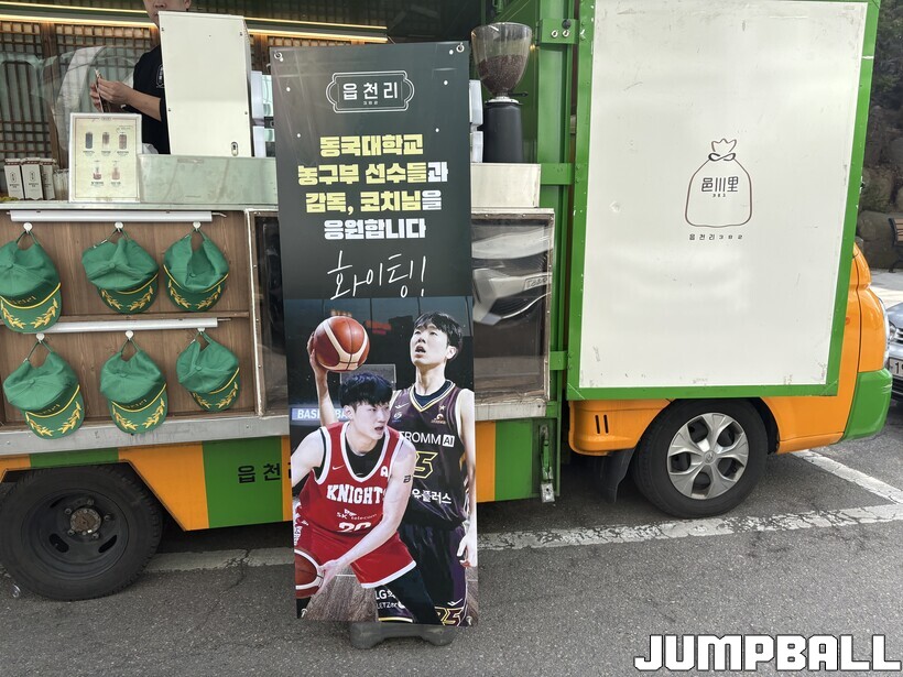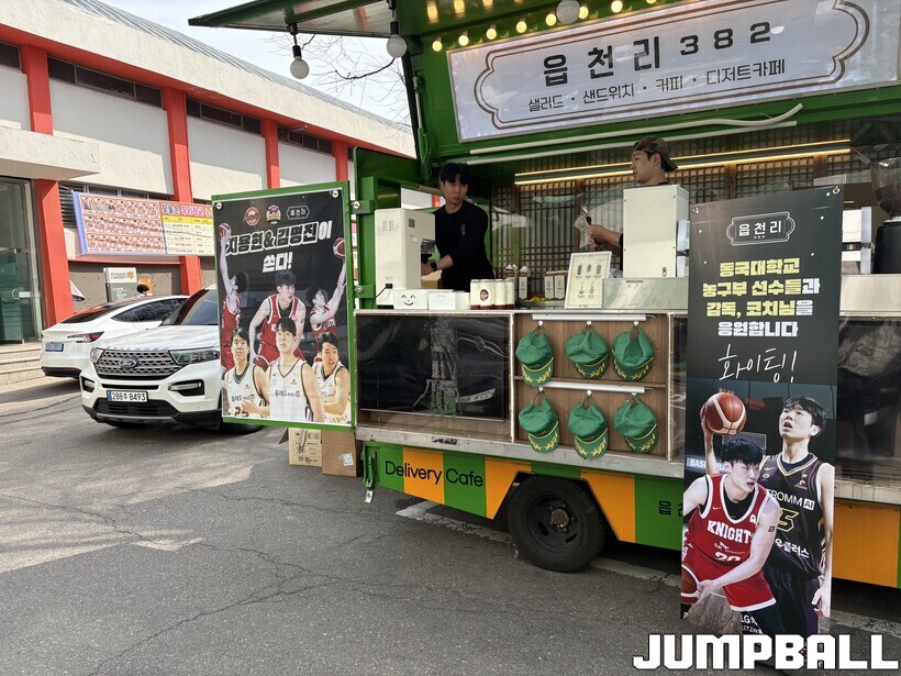 개막전을 맞아 북새통을 이룬 동국대 체육관은, 커피차로 인해 더 북적였다.