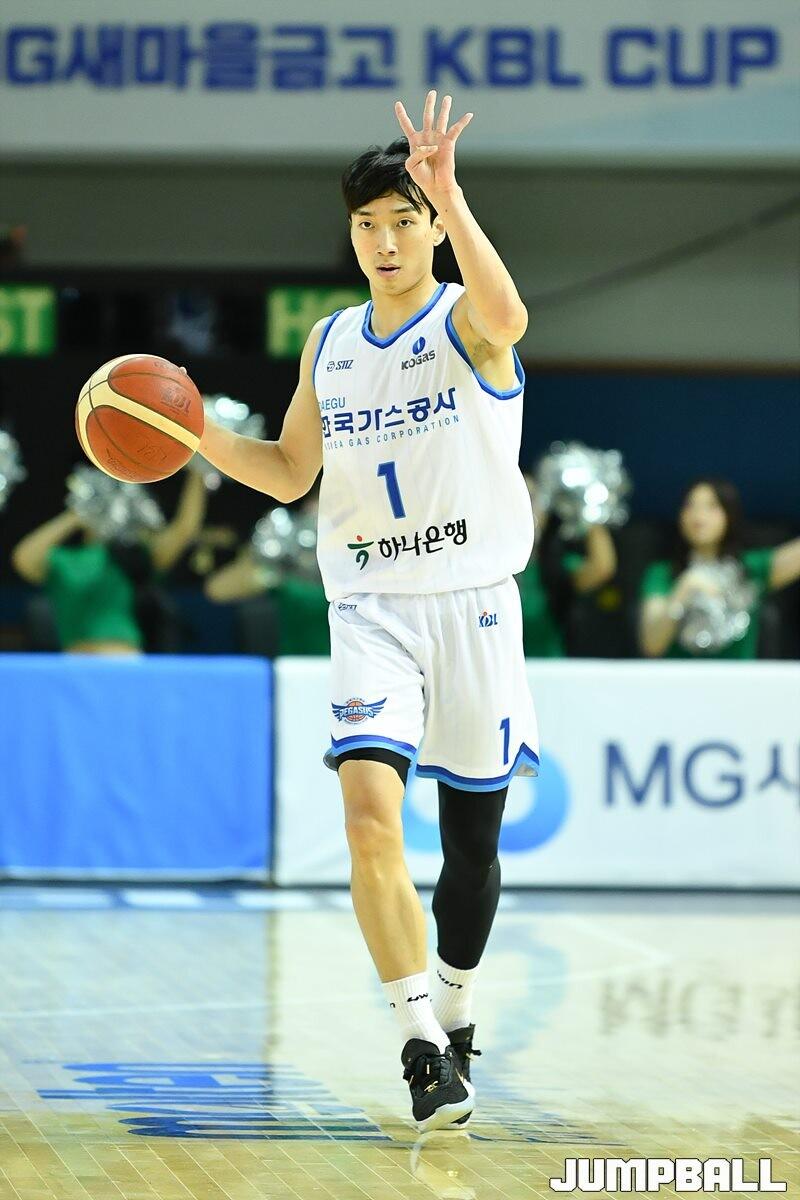 11일 군산월명체육관에서 열린 2023 MG새마을금고 KBL 컵대회 한국가스공사와 LG의 예선 경기, 한국가스공사 양준우가 작전을 지시하고 있다. [점프볼=군산/유용우 기자]