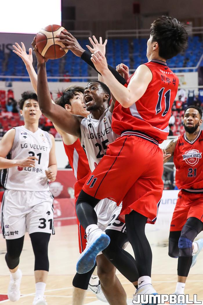 [점프볼=윤민호 기자] 6일 울산 동천체육관에서 열린 2020-2021 현대모비스 프로농구 울산 현대모비스와 창원 LG의 경기