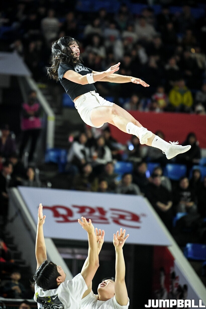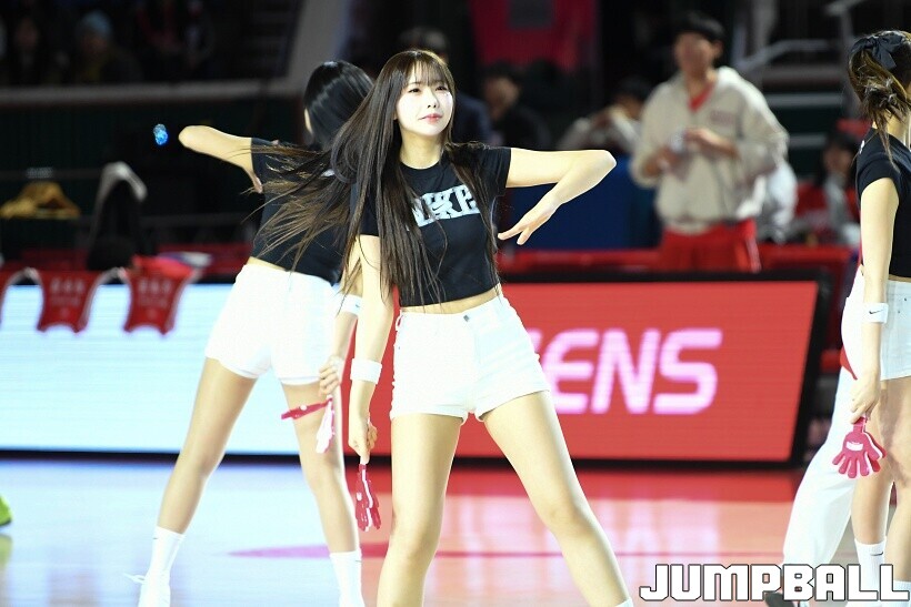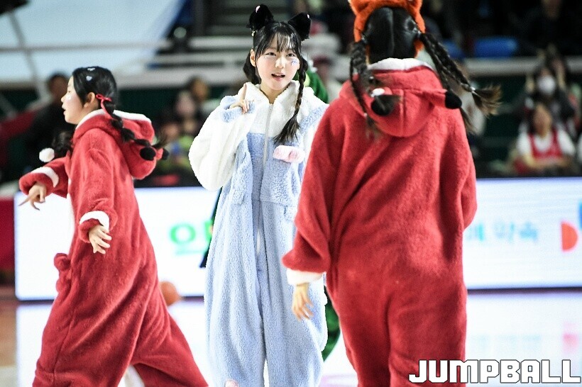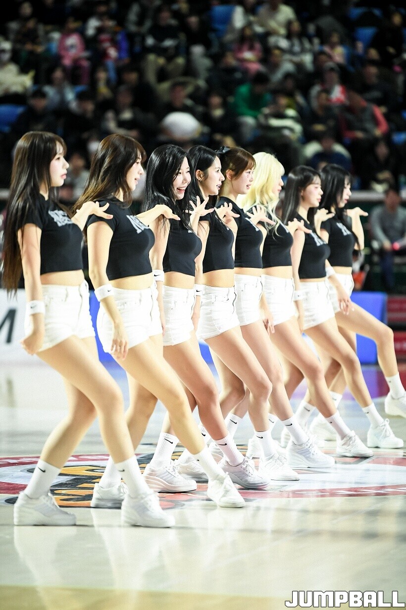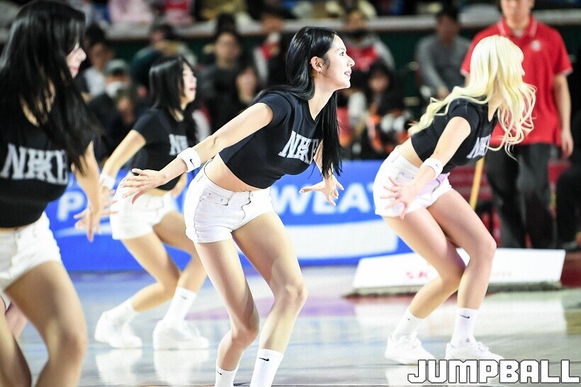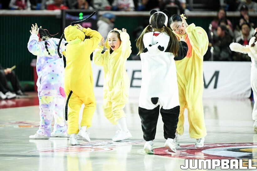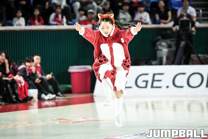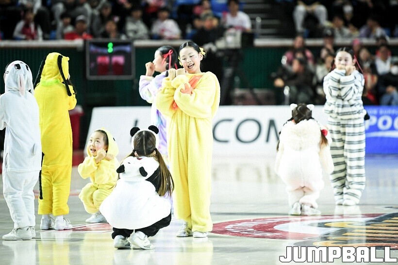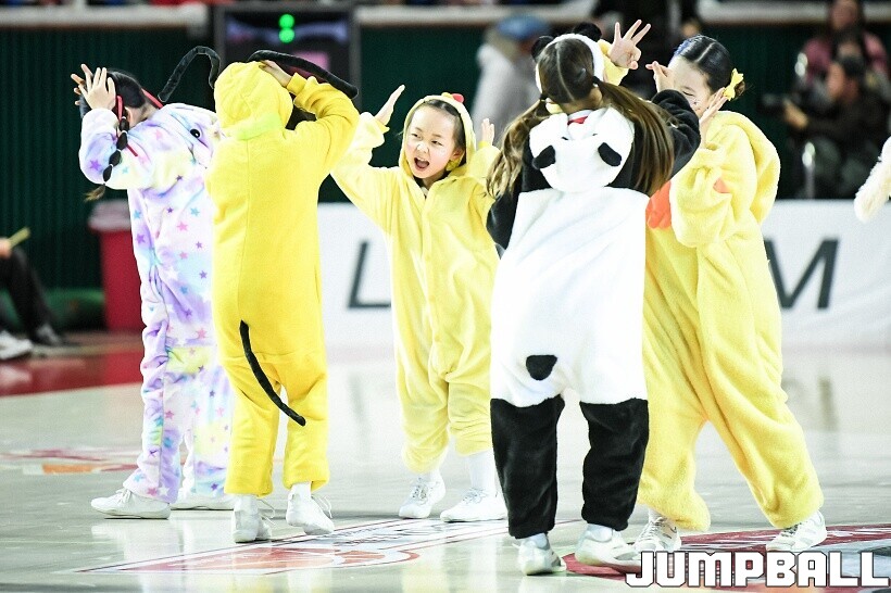 [점프볼=잠실/유용우 기자] 10일 잠실학생체육관에서 열린 2025-2026 LG전자 프로농구 서울 SK와 서울 삼성의 경기, SK 치어리더들이 화려한 퍼포먼스를 펼치며 팀 승리를 기원하고 있다. 어린이 응원단은 귀여운 율동을 펼치며 홈팬들의 박수와 환호를 이끌었다.