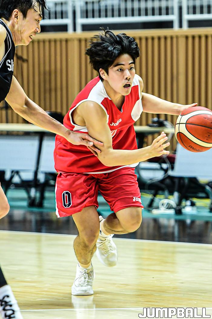 2일 경기도 수원에 위치한 수원 KT 소닉붐 아레나에서 수원 KT와 울산 현대모비스의 연습경기가 열렸다. 현대모비스 김동준이 돌파를 시도하고 있다.