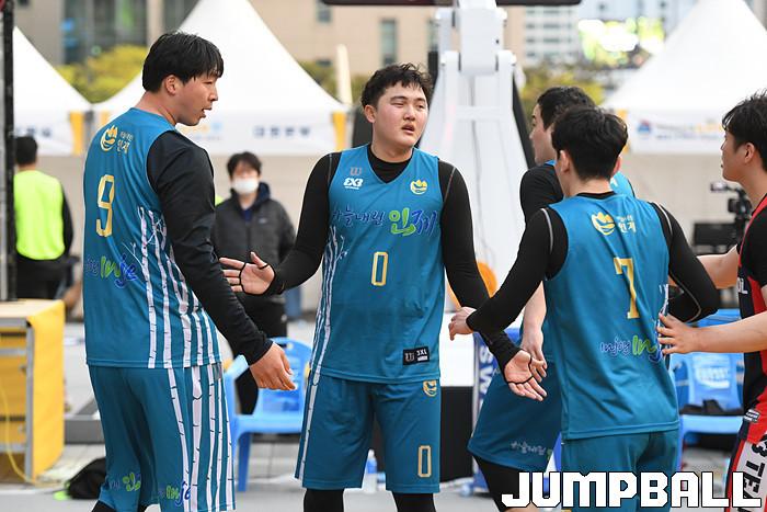 [점프볼=서울/박상혁 기자] 10일 서울신문사앞 특설코트에서 열린 KB국민은행 LIIV m 3X3 코리아투어 2021 서울 대회, 하늘내린인제가 경기에서 승리후 하이파이브를 하고 있다.