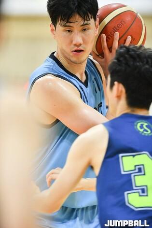 10일 고양체육관 보조체육관에서 열린 고양 소노와 성균관대의 연습경기, 소노 김강선이 패스를 내주고 있다. [점프볼=고양/유용우 기자]